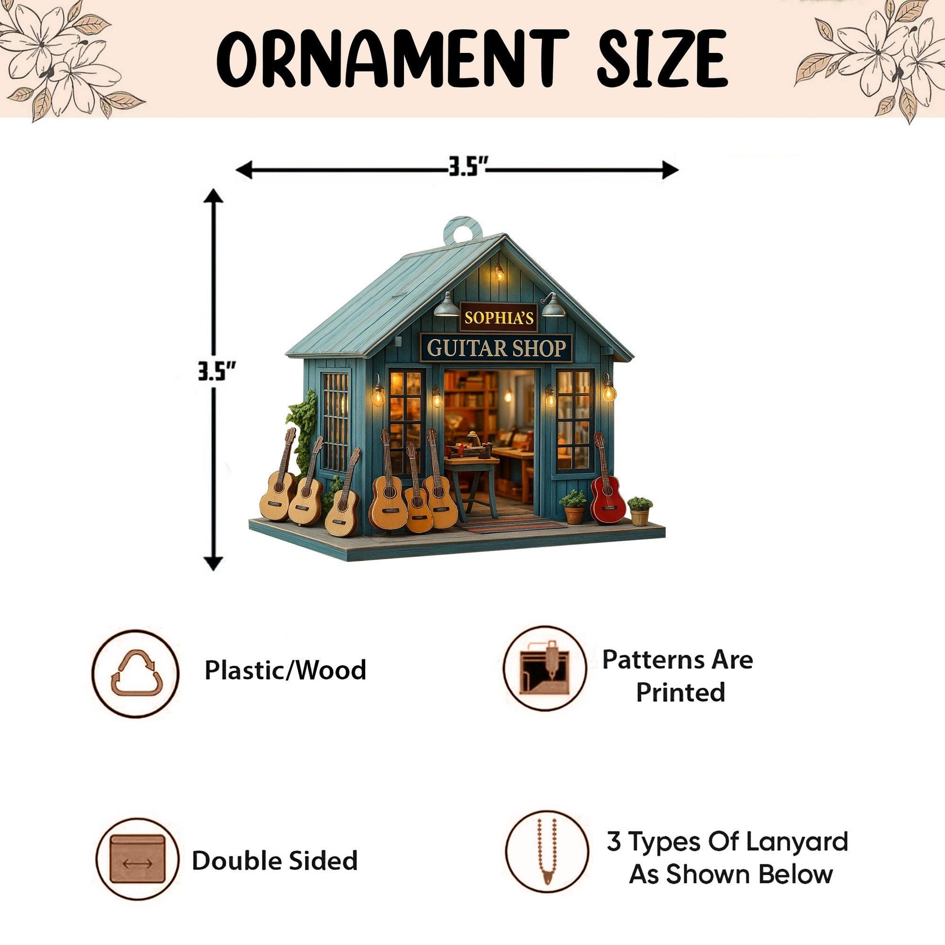 Personalized Guitar 2D Flat Ornament, Custom Guitar Shop Christmas Tree Ornament, Music Home Decor, Gift for Music Lovers, Guitar Players