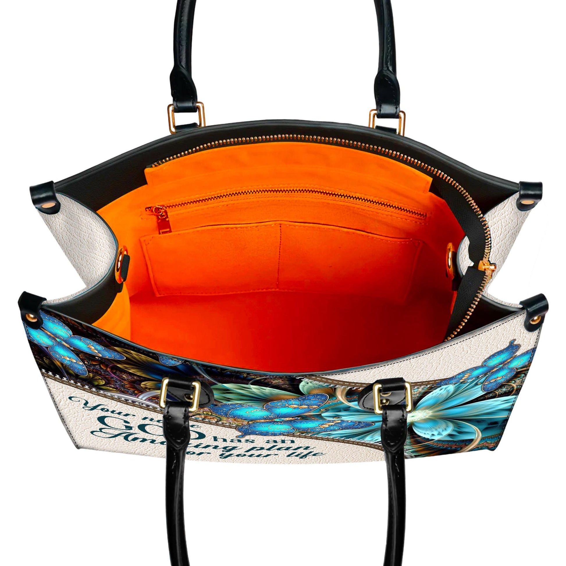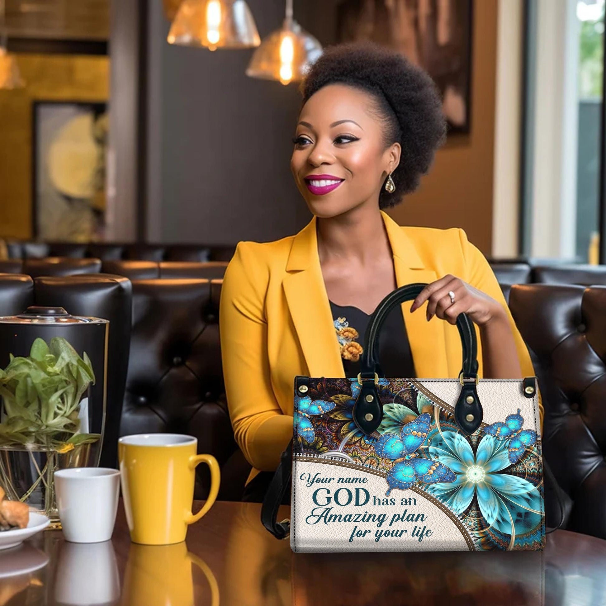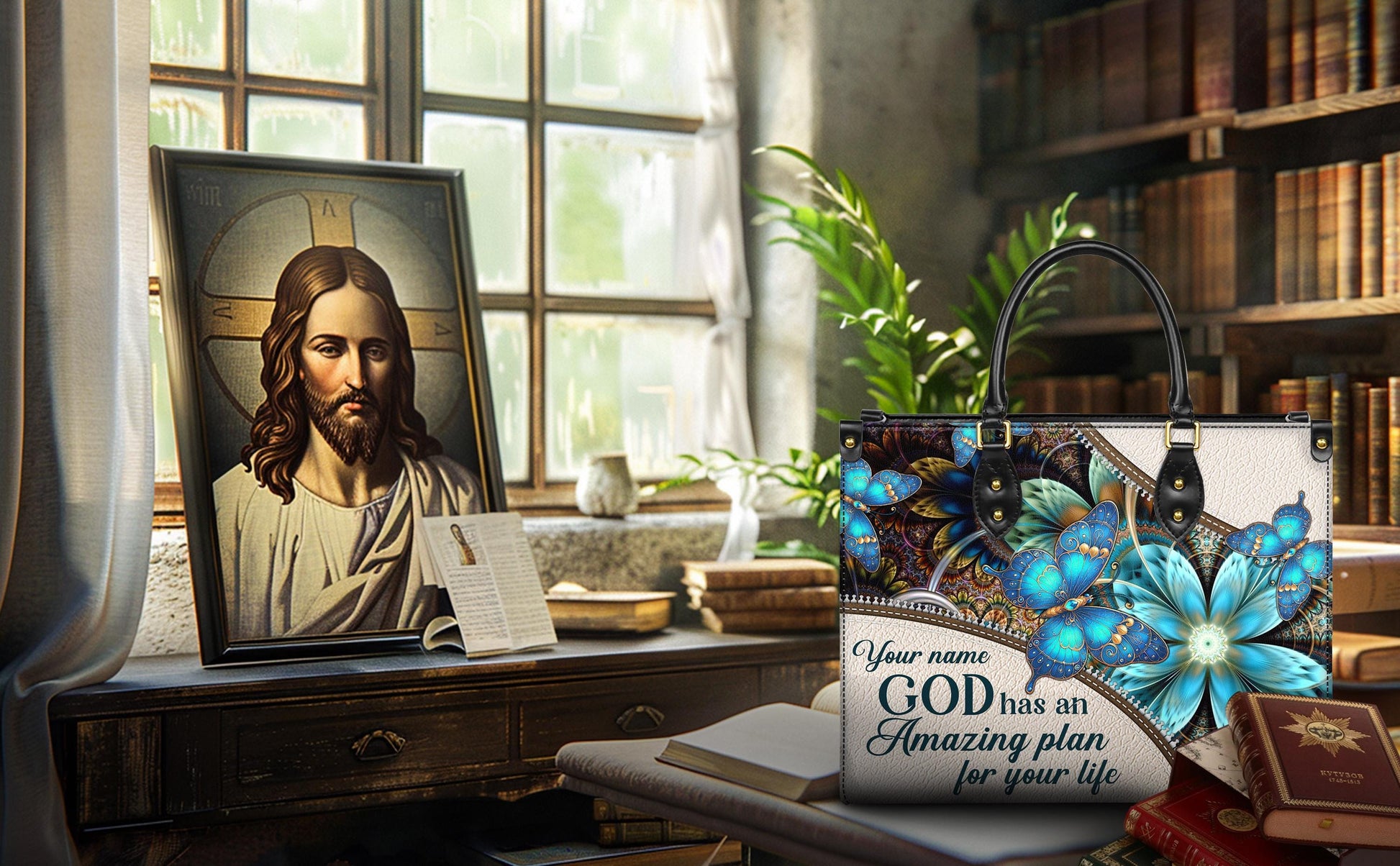 Personalized Leather Handbag Custom Name, Christian Gift, Gifts for Women, Amazing Plan for Your Life Bag, Butterfly & Flower Design