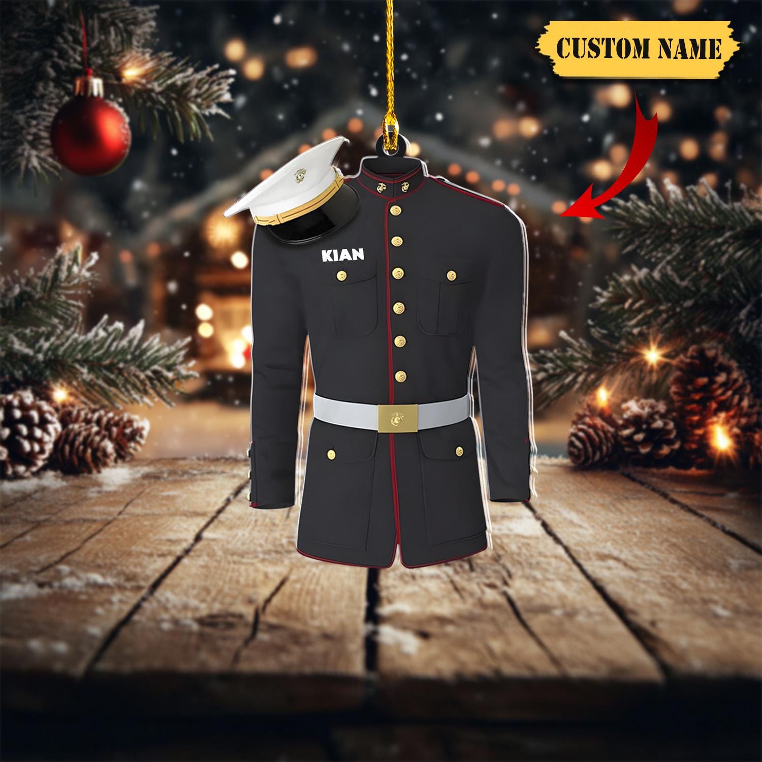 Personalized Marine Corps Uniform Christmas Acrylic Ornament, Marine Corps Ornament, Custom Name Marine Soldier Tree Hanging Ornament