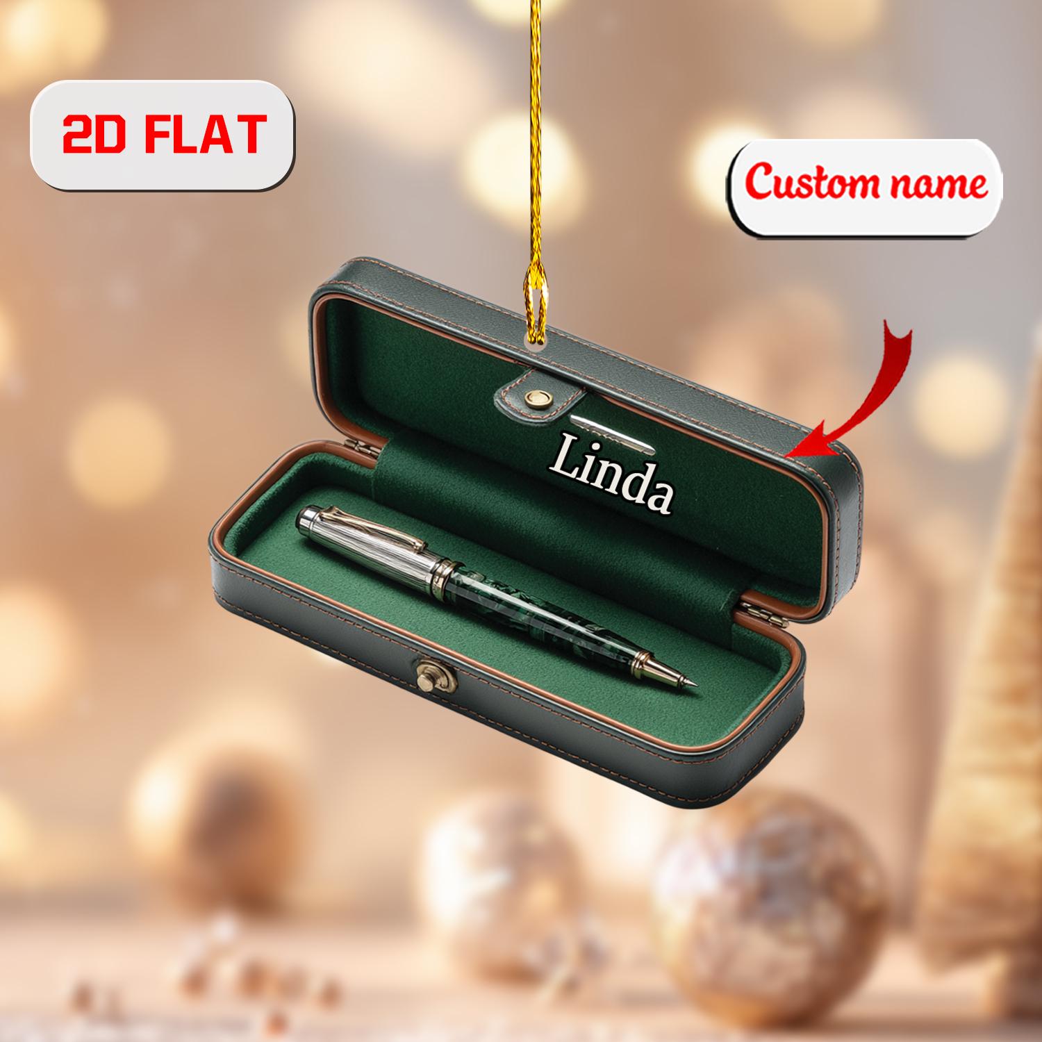 Personalized Pen Ornament Custom Name, Acrylic Christmas Decoration with Pen Case, Teacher Writer Office Ornament Gift for Coworker Boss