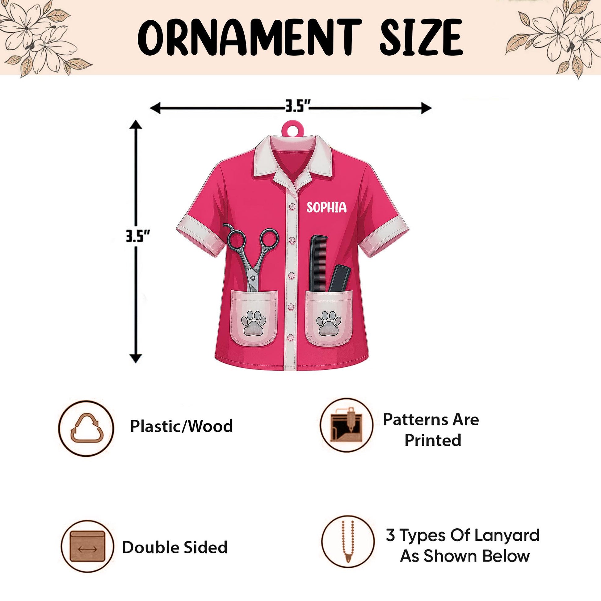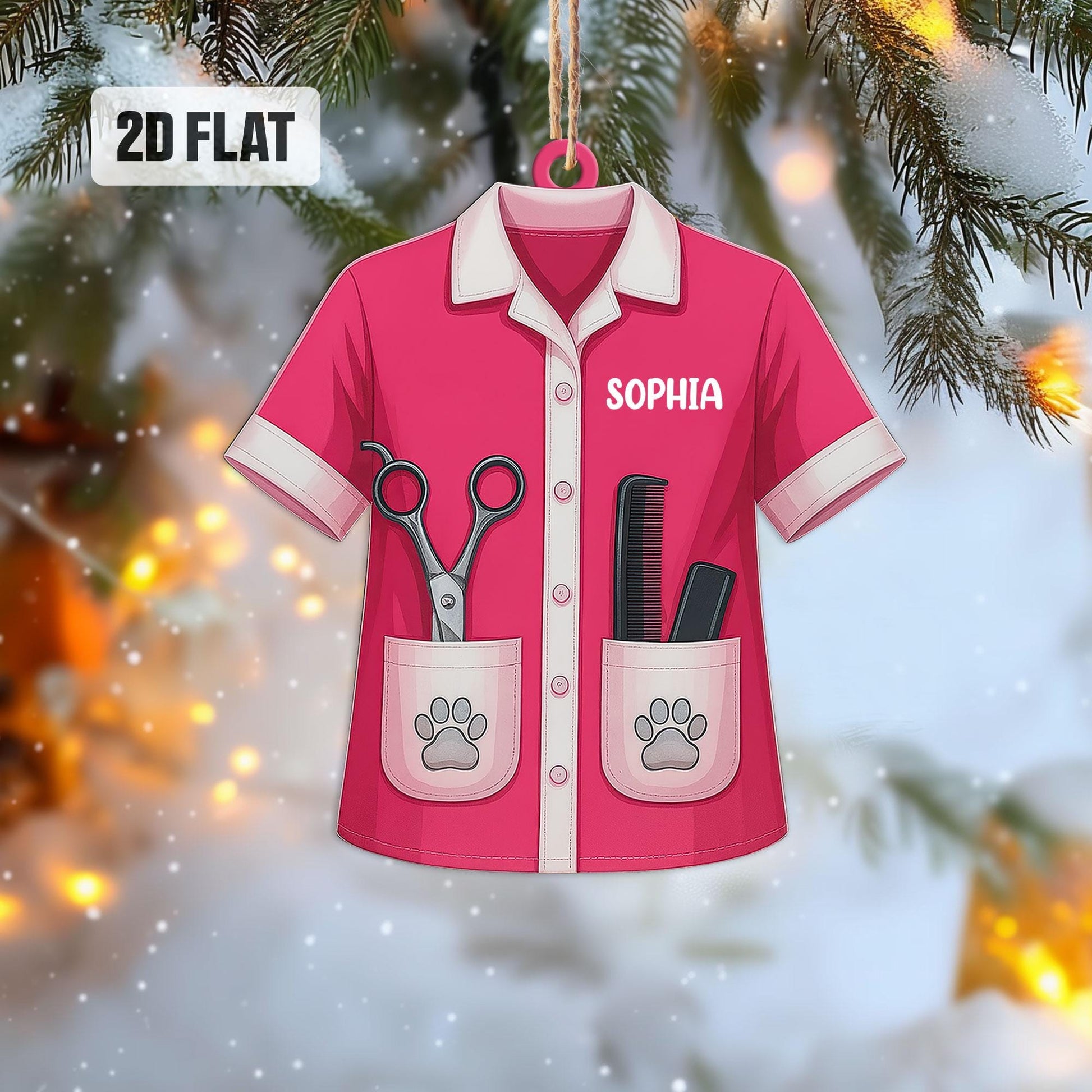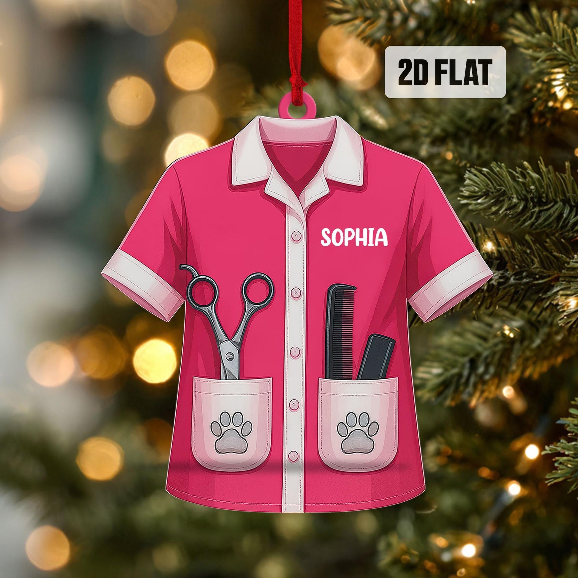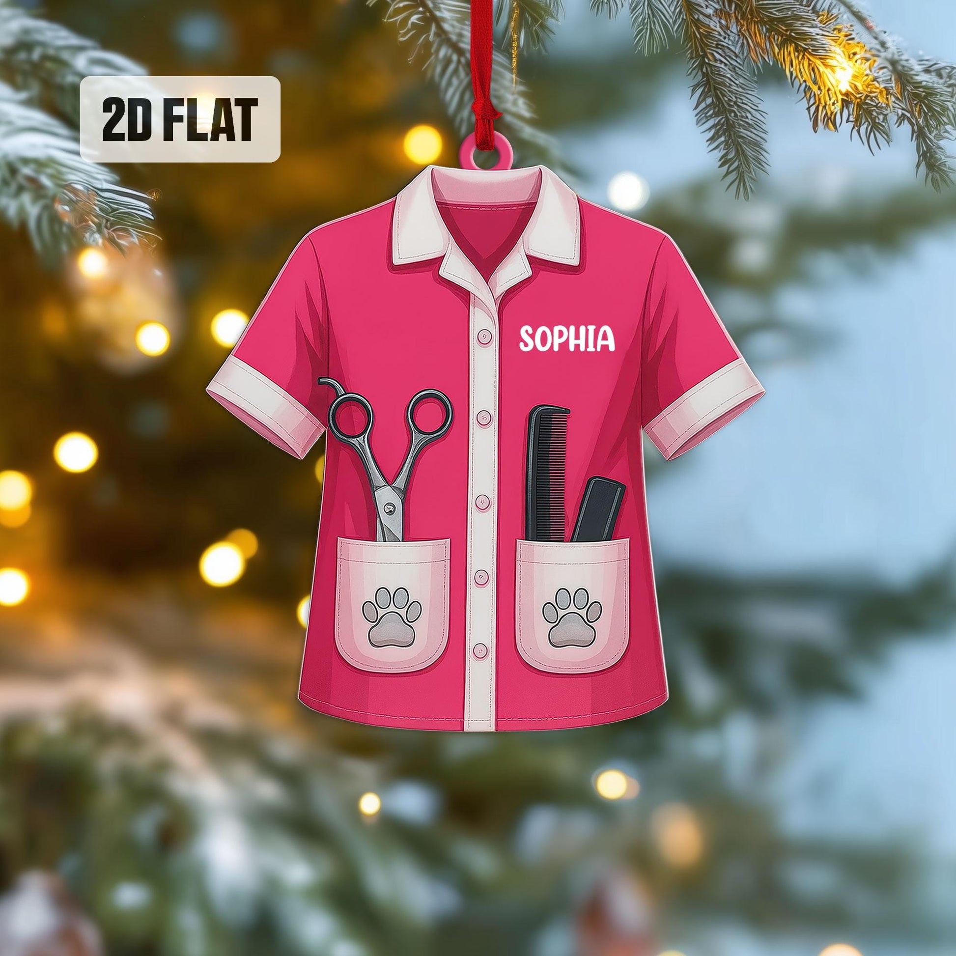 Personalized Pet Groomer 2D Flat Ornament, Custom Pet Grooming Christmas Tree Ornament, Pet Salon Decor, Gift For Pet Lovers, Dog Mom Gift