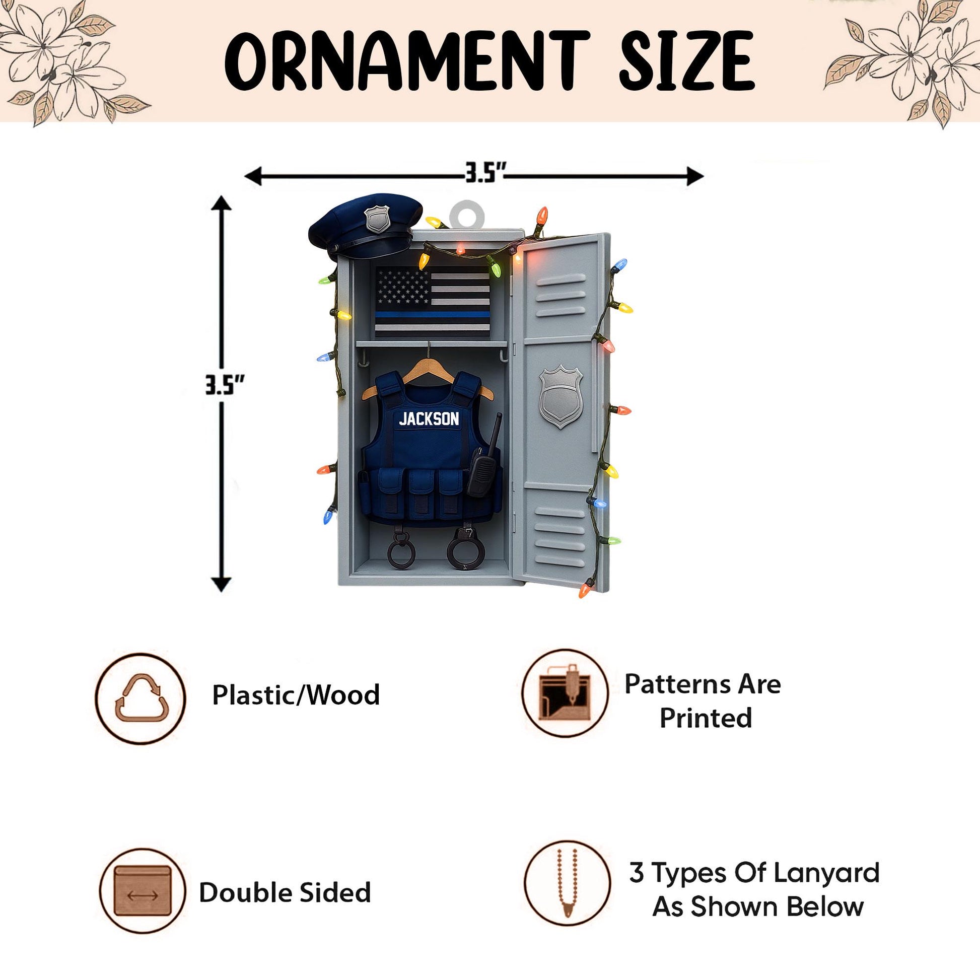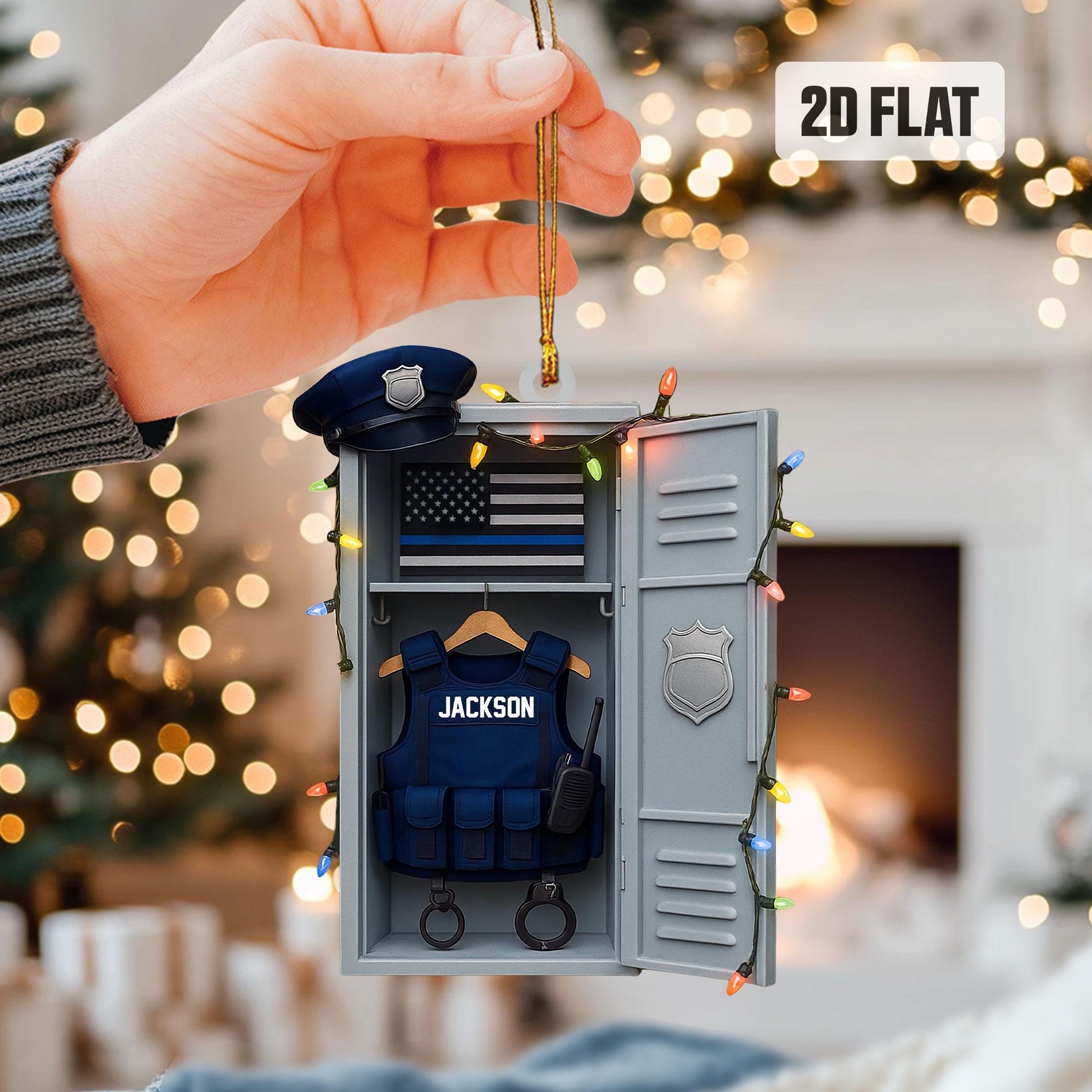 Personalized Police Flat 2D Ornament, Custom Police Locker Rearview Mirror Car Accessories, Xmas Law Enforcement Gift for Dad, Husband, Son