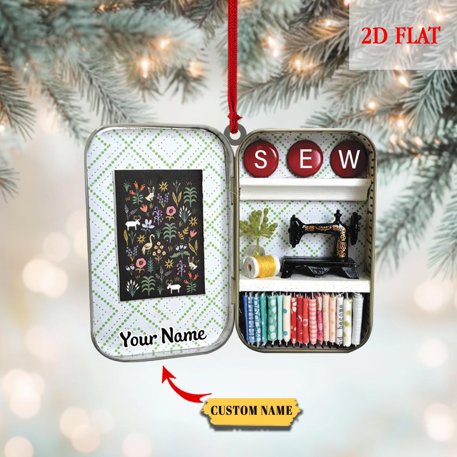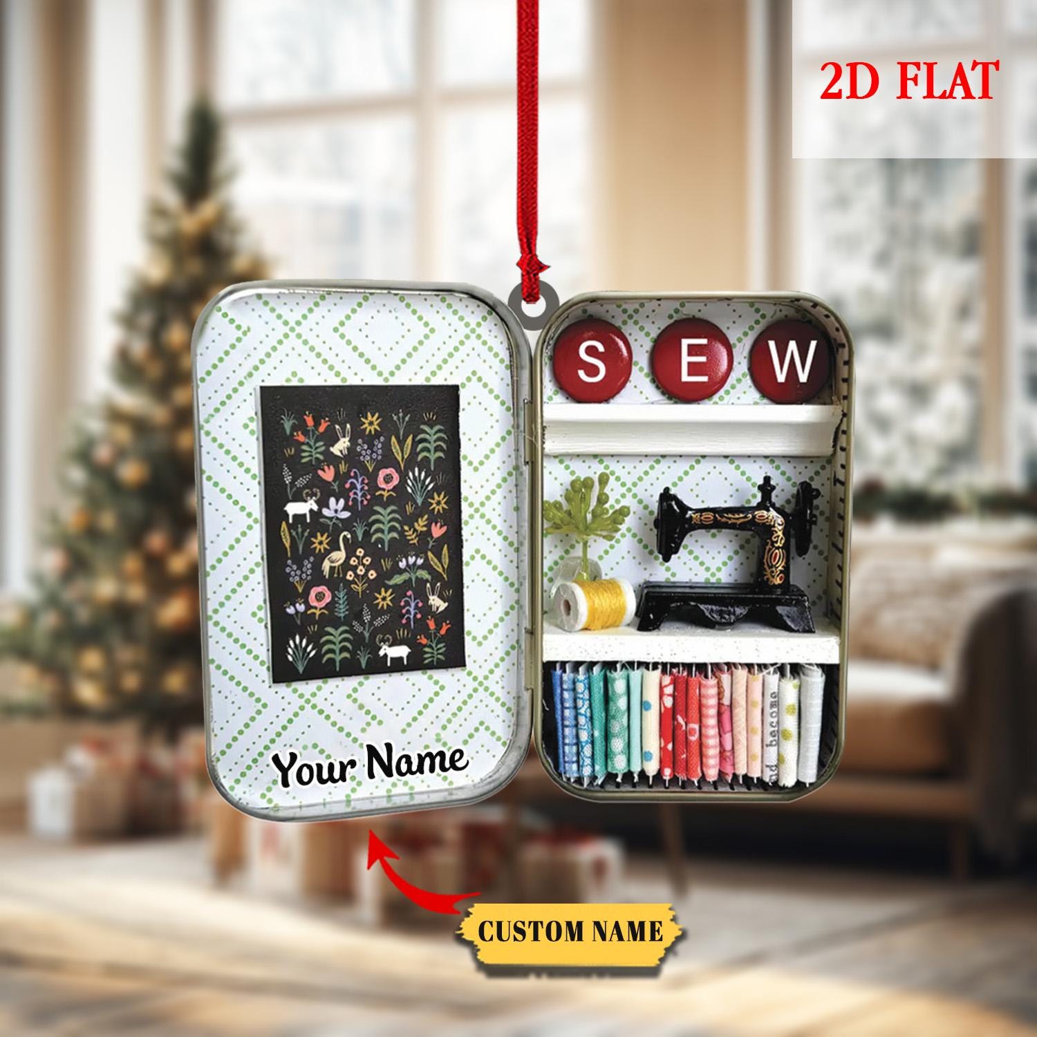Personalized Sewing Box 2D Flat Acrylic Christmas Ornament, Christmas Gift For Friend, For Mom,Gift for Sewing Lovers, Sewing Ornament Decor