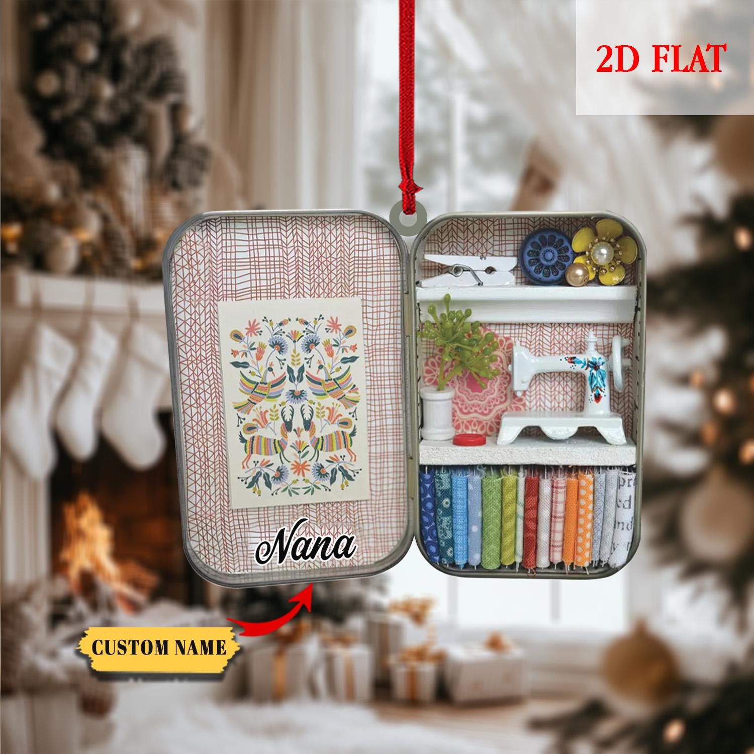 Personalized Sewing Box 2D Flat Christmas Ornament, Christmas Gift For Friend, Gift for Sewing Lovers, Gift For Mom, Sewing Ornament Decor