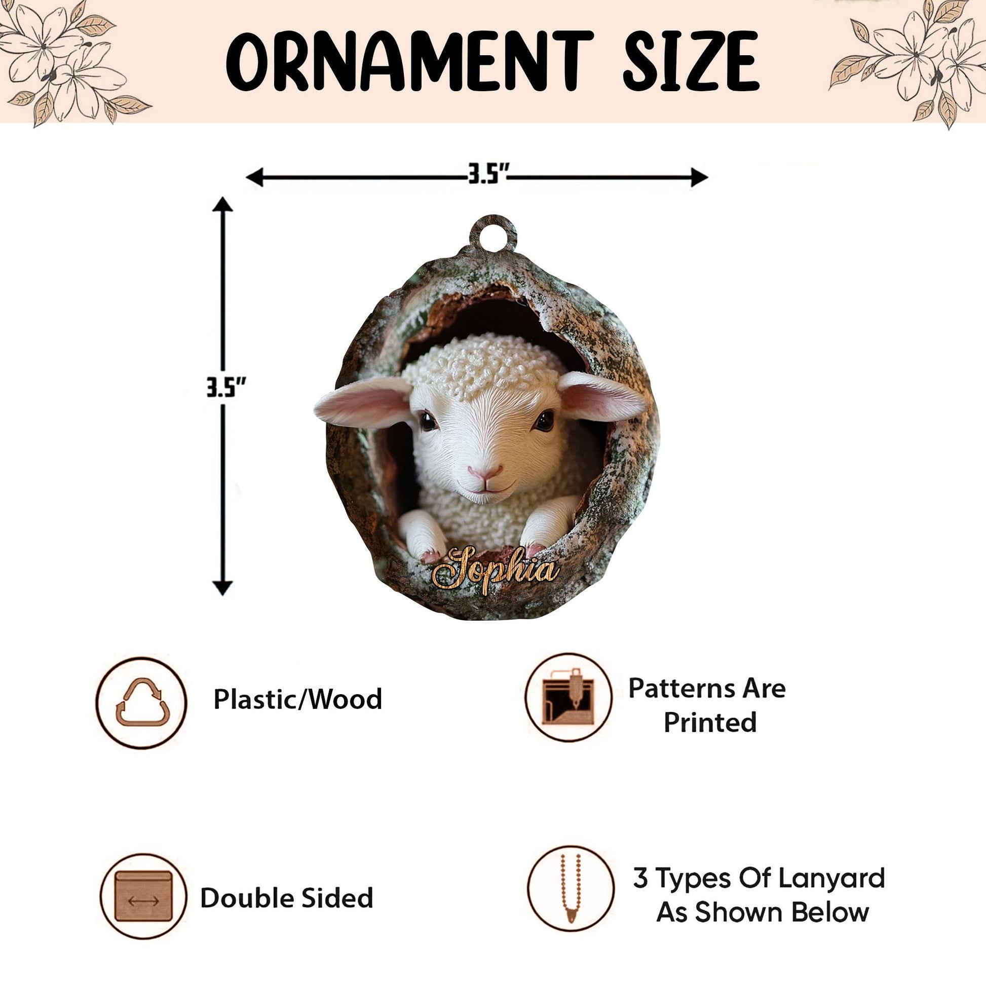 Personalized Sheep 2D Flat Ornament, Custom Sheep Christmas Tree Ornament, Sheep Christmas Home Decor, Farm Ornament, Gift for Animal Lovers