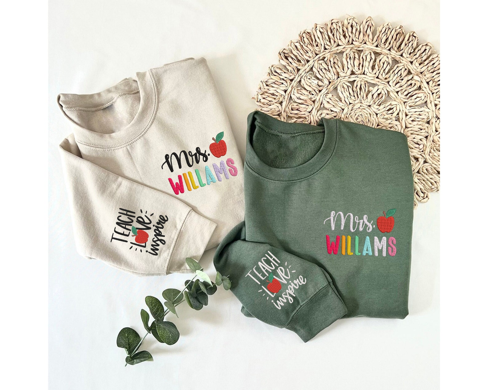 Personalized Teacher Embroidered Sweatshirt, Teach Love Inspire Sweatshirt, Back To School Gift Idea,Teacher Name Sweatshirt