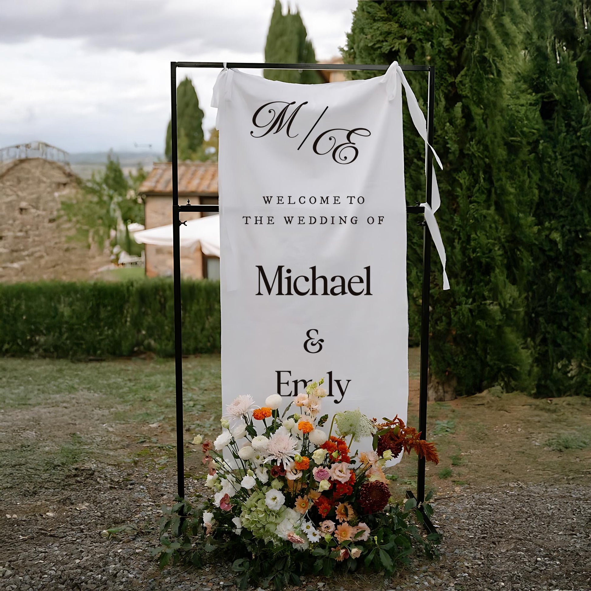 Personalized Wedding Welcome Sign with Couple Names & Date – Elegant Reception Banner – Custom Ceremony Entrance Decor for Bride and Groom
