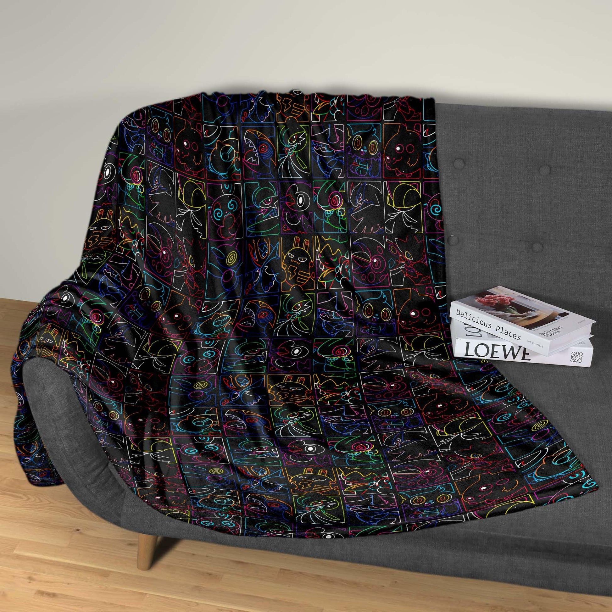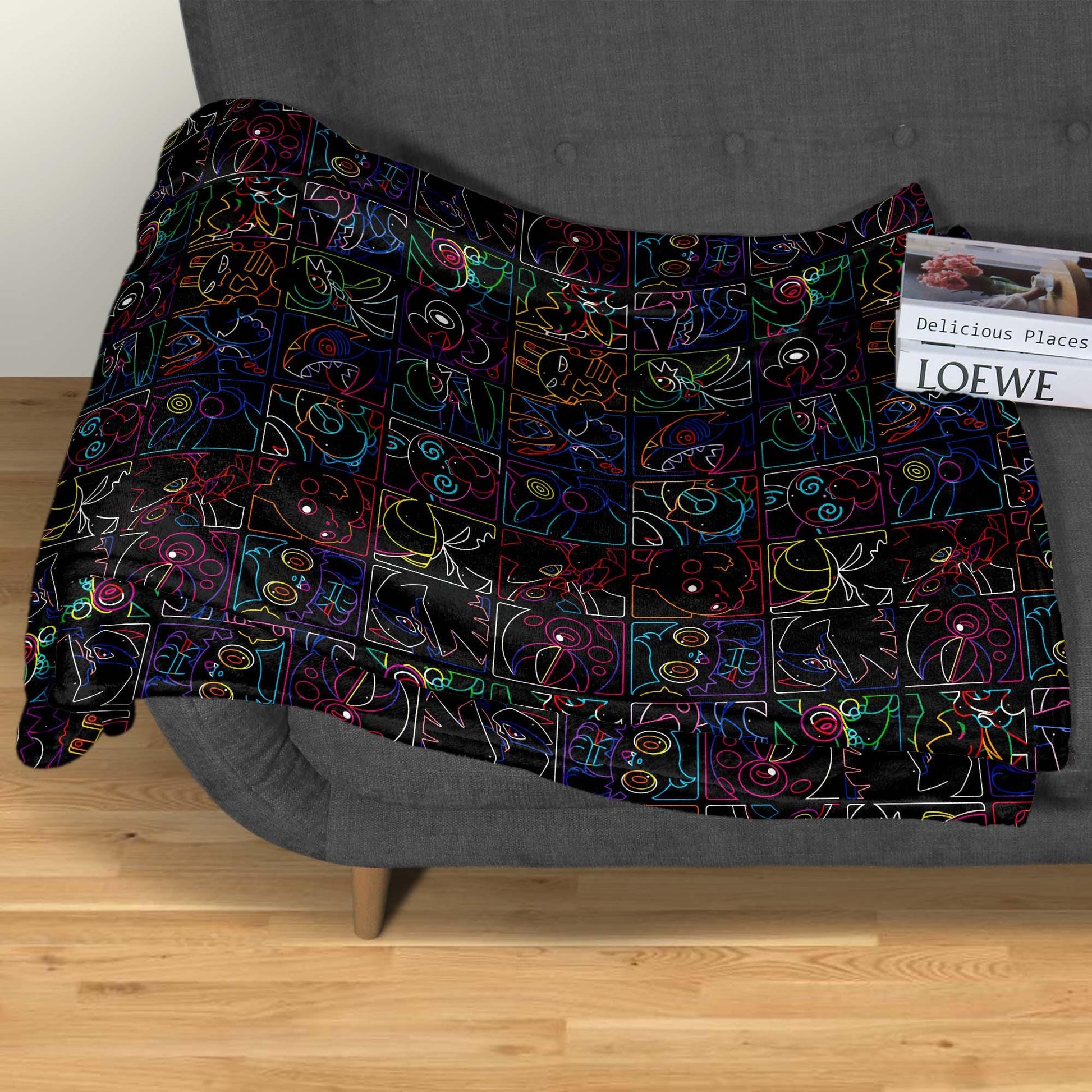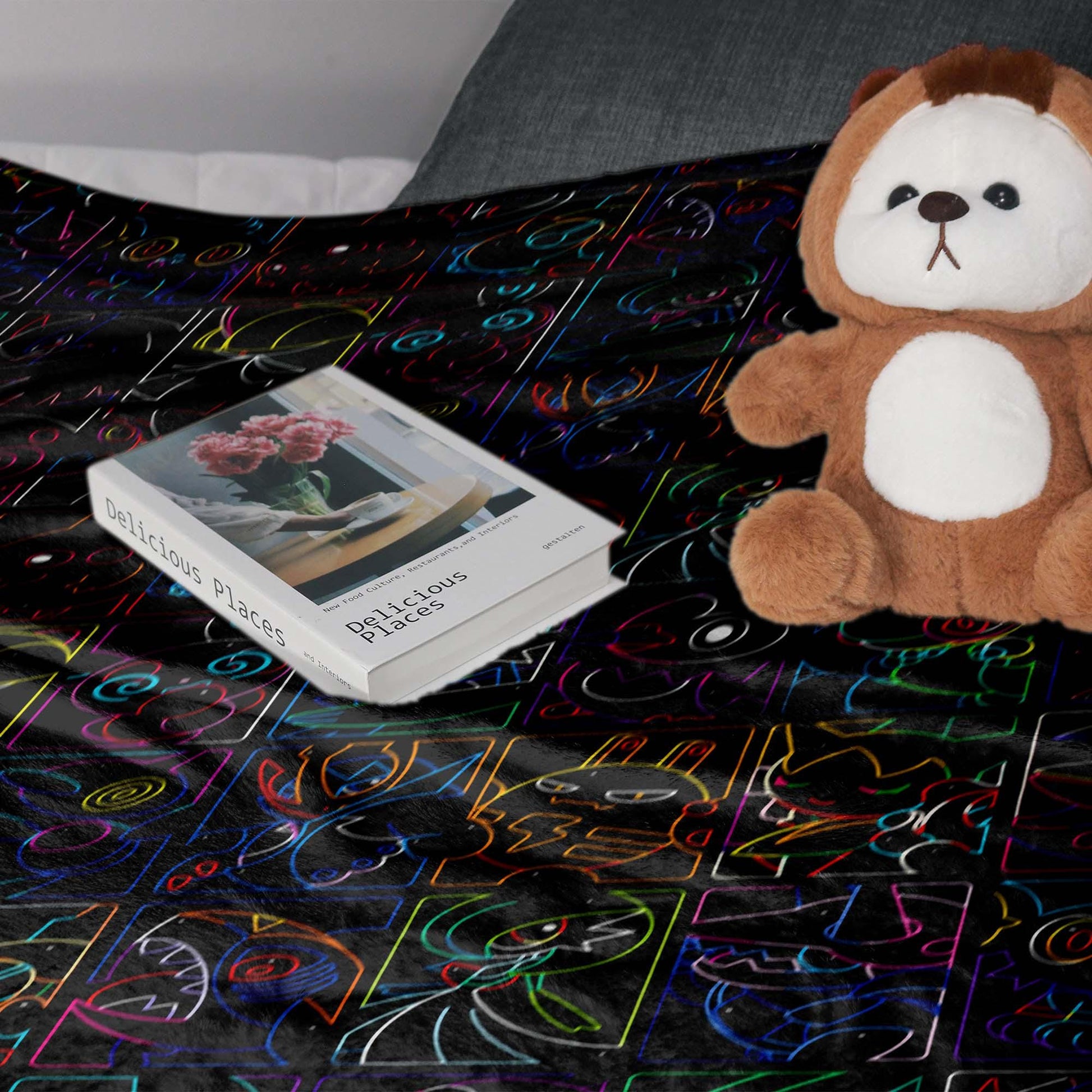 Pikachu and Porygon-Z Blanket, Neon Style Throw Blanket, Soft Cotton Fleece Blanket, Cute Home Decor Gift, Pikachu Blanket Gifts