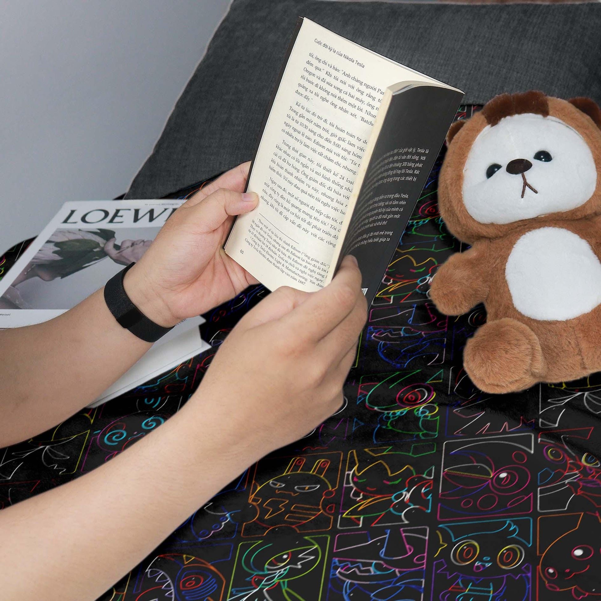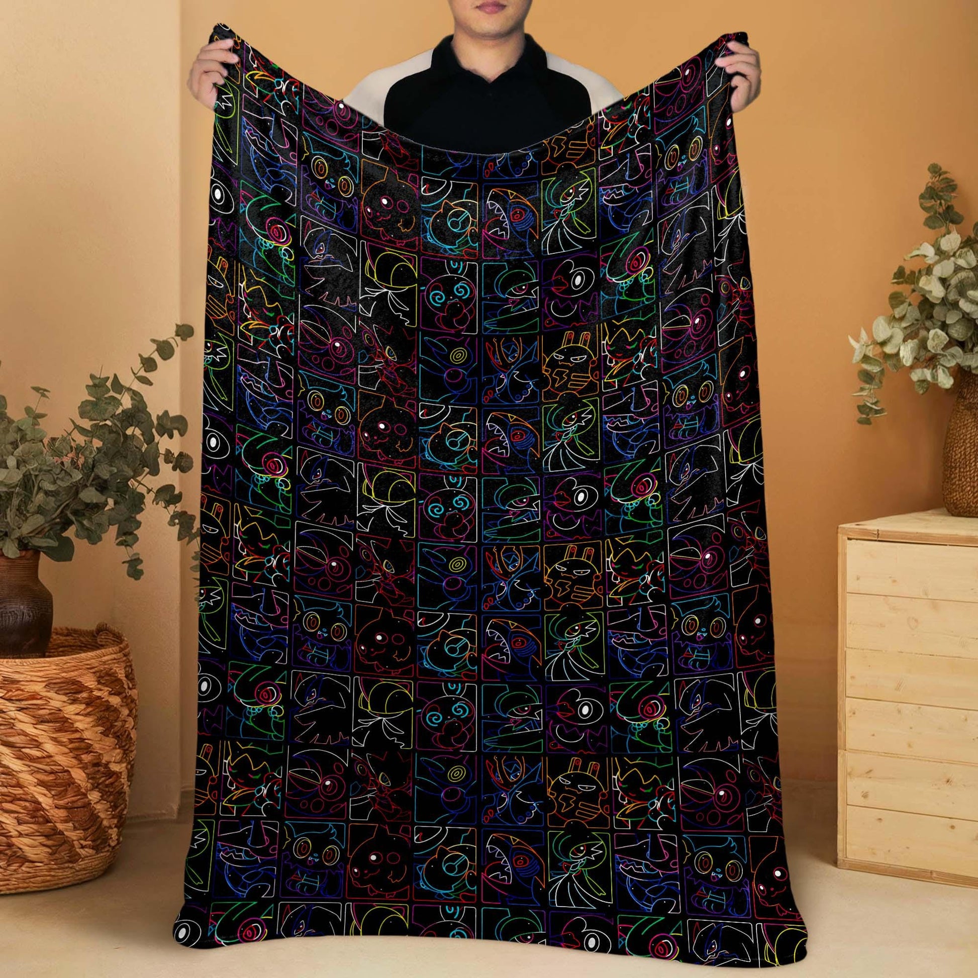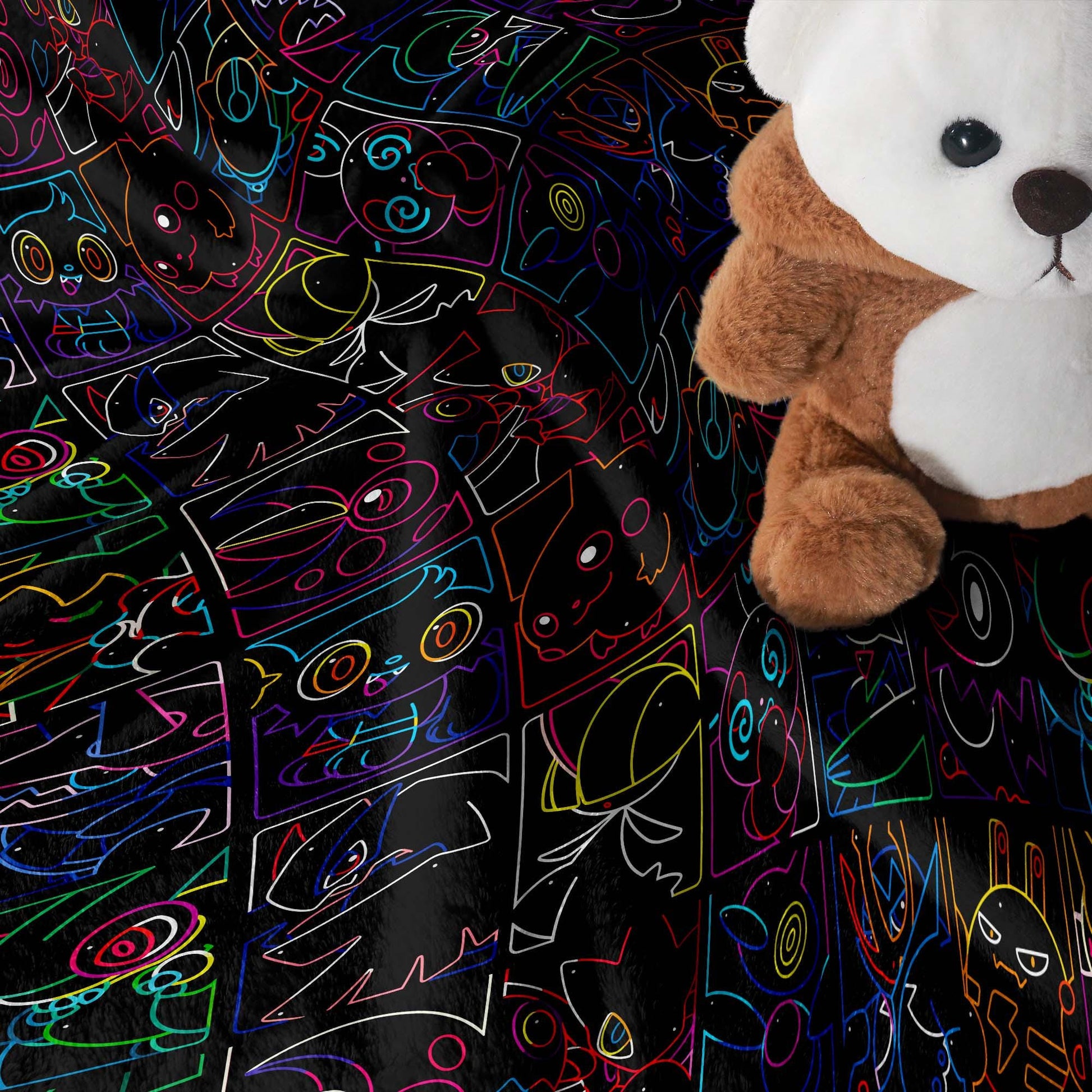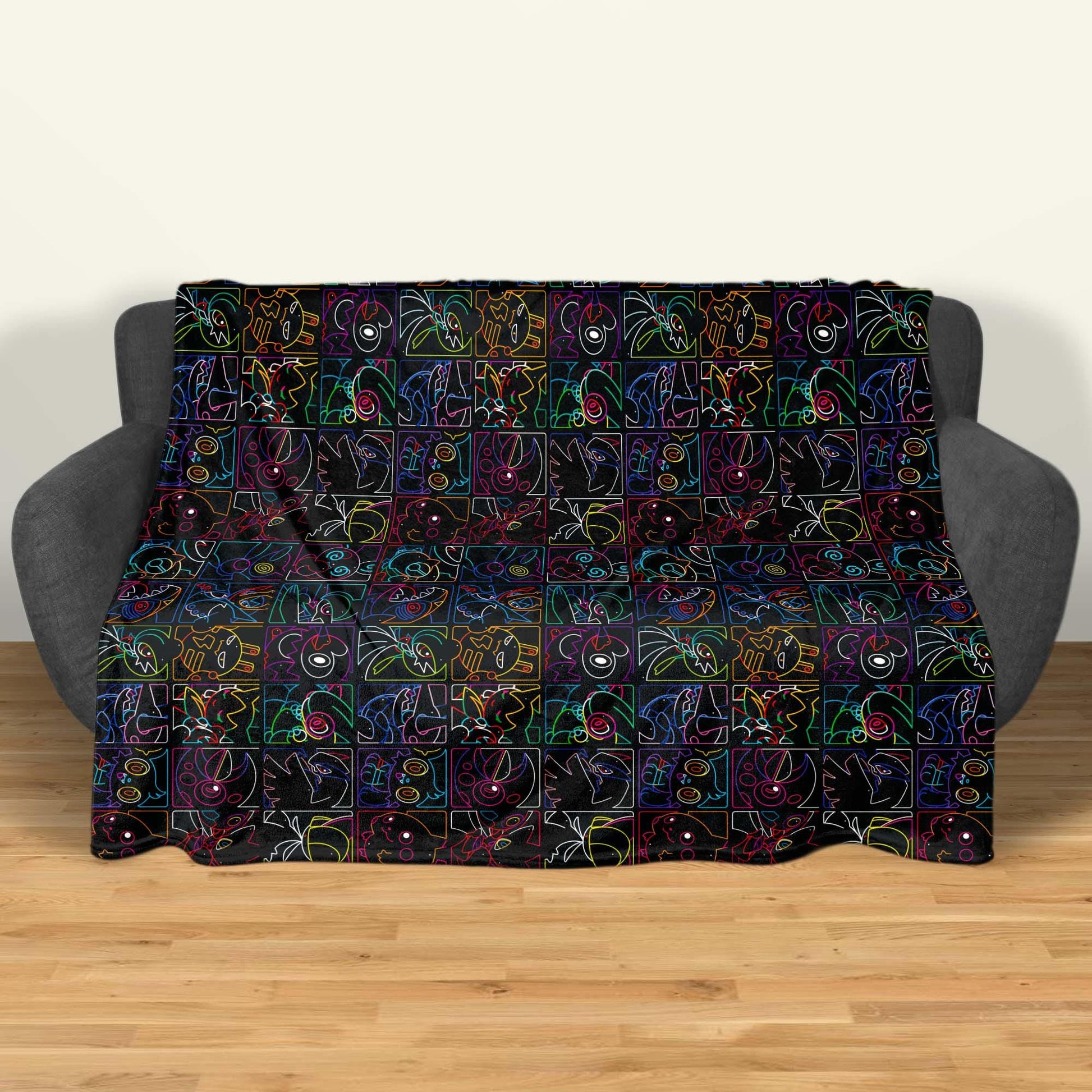 Pikachu and Porygon-Z Blanket, Neon Style Throw Blanket, Soft Cotton Fleece Blanket, Cute Home Decor Gift, Pikachu Blanket Gifts