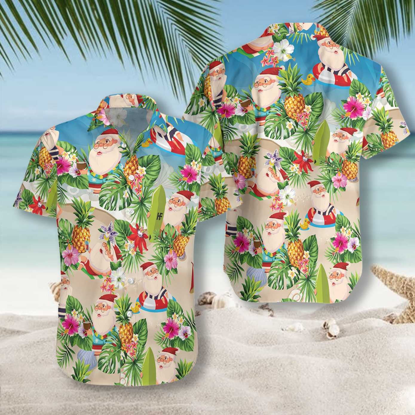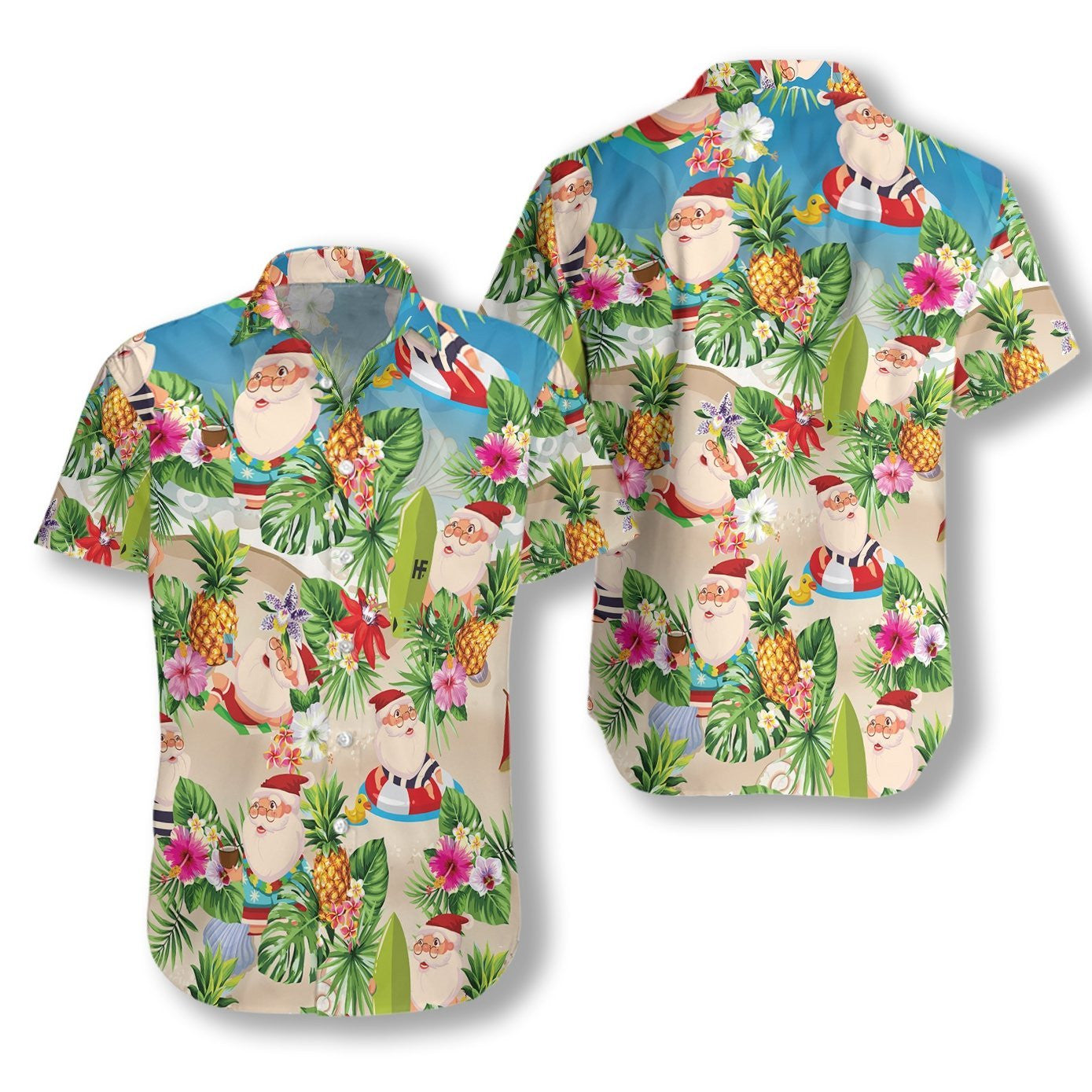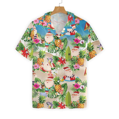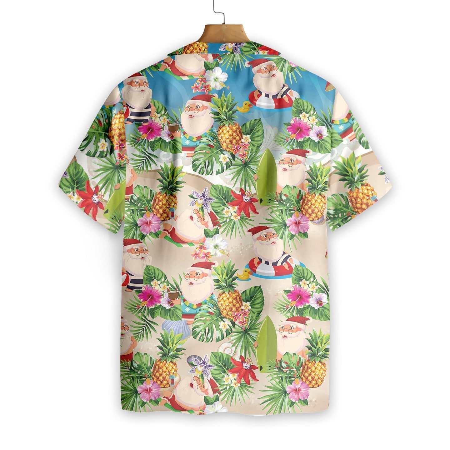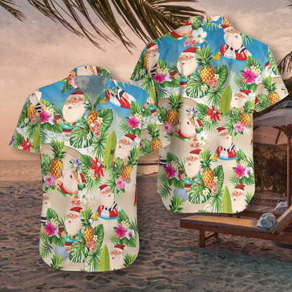 Pineapple And Santa Claus On Beach Happy Moment Hawaiian Shirt, Hawaiian Shirt Gift, Christmas Gift