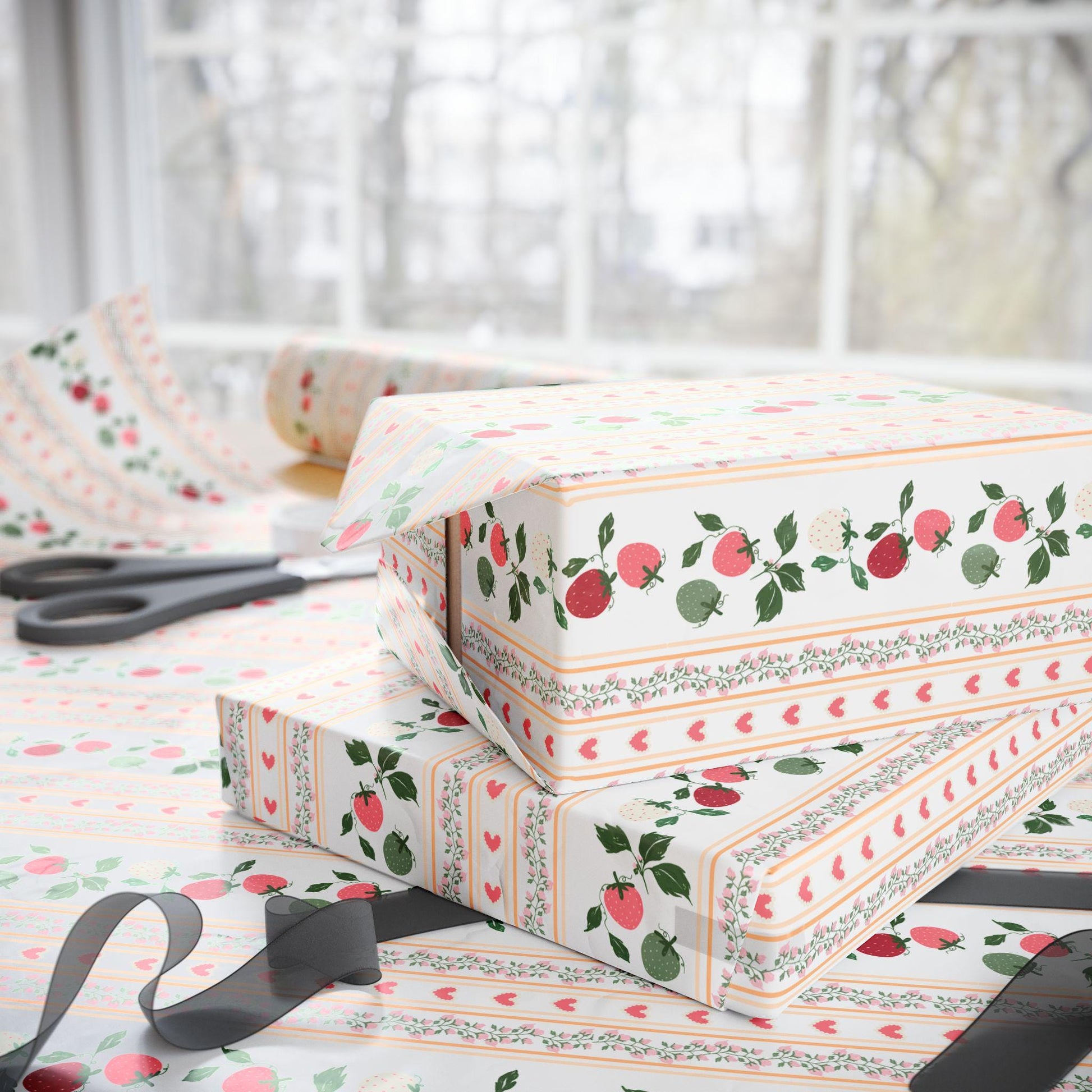 Pink Berry Wrapping Paper: Preppy Girly Gift Wrap
