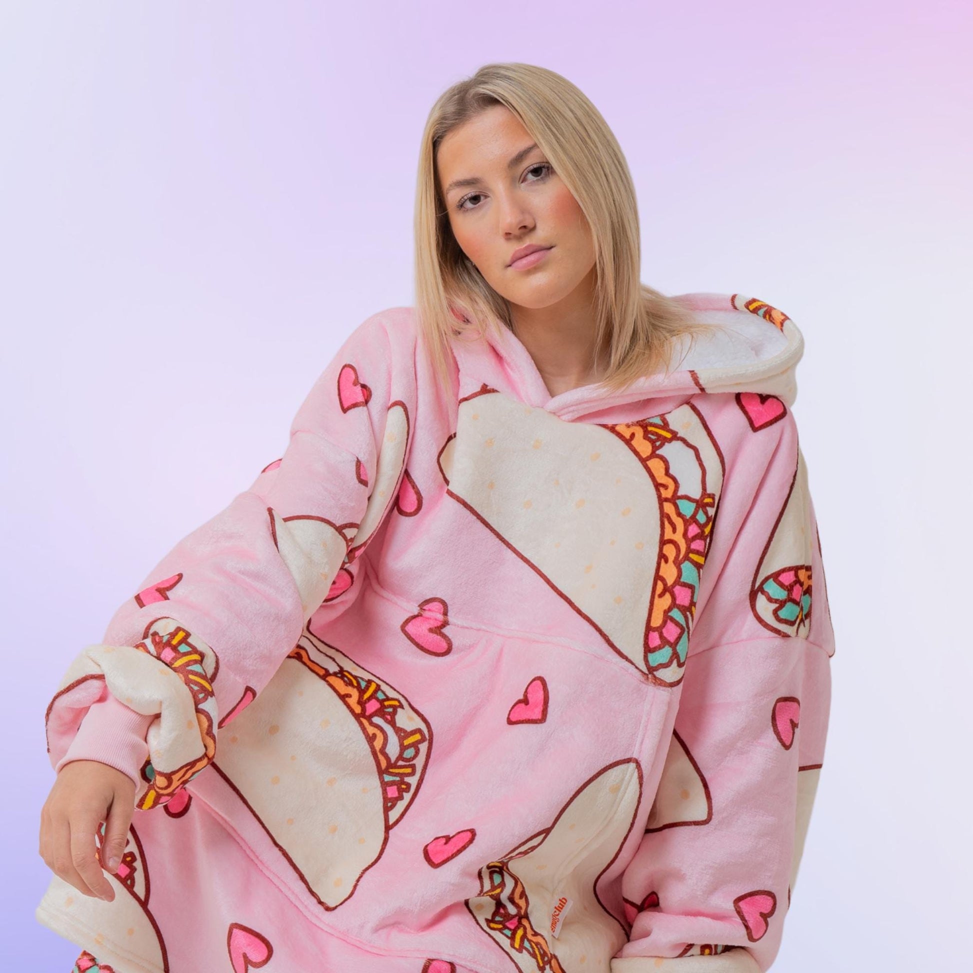 Pink Taco Hoodie Blanket Oversized Thick Sherpa Hoodie Snugclub One Size