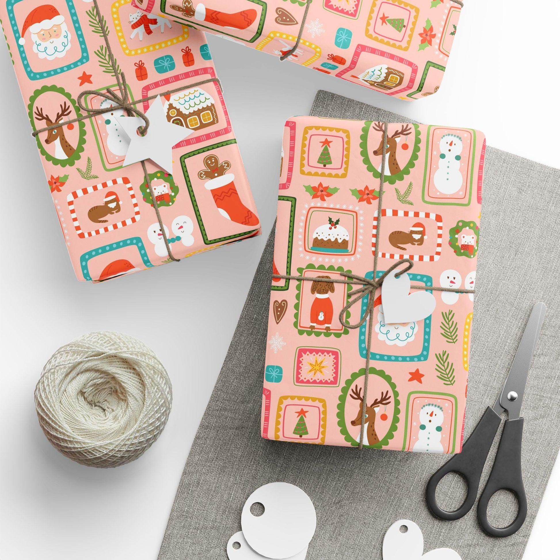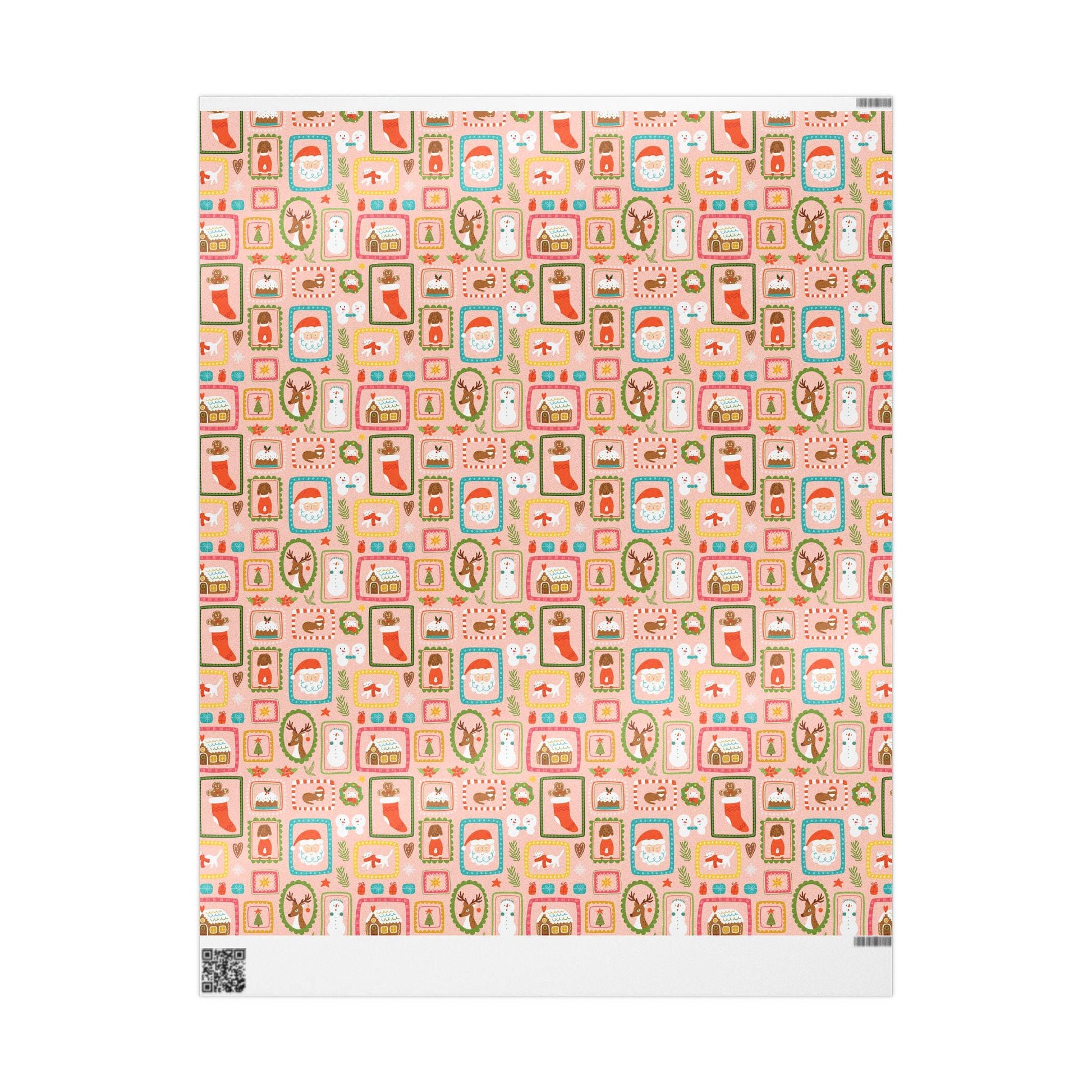 Pink Vintage Christmas Gift Wrapping Paper | Retro Patchwork Holiday Gift Wrap | Pink Custom Gift Wrap