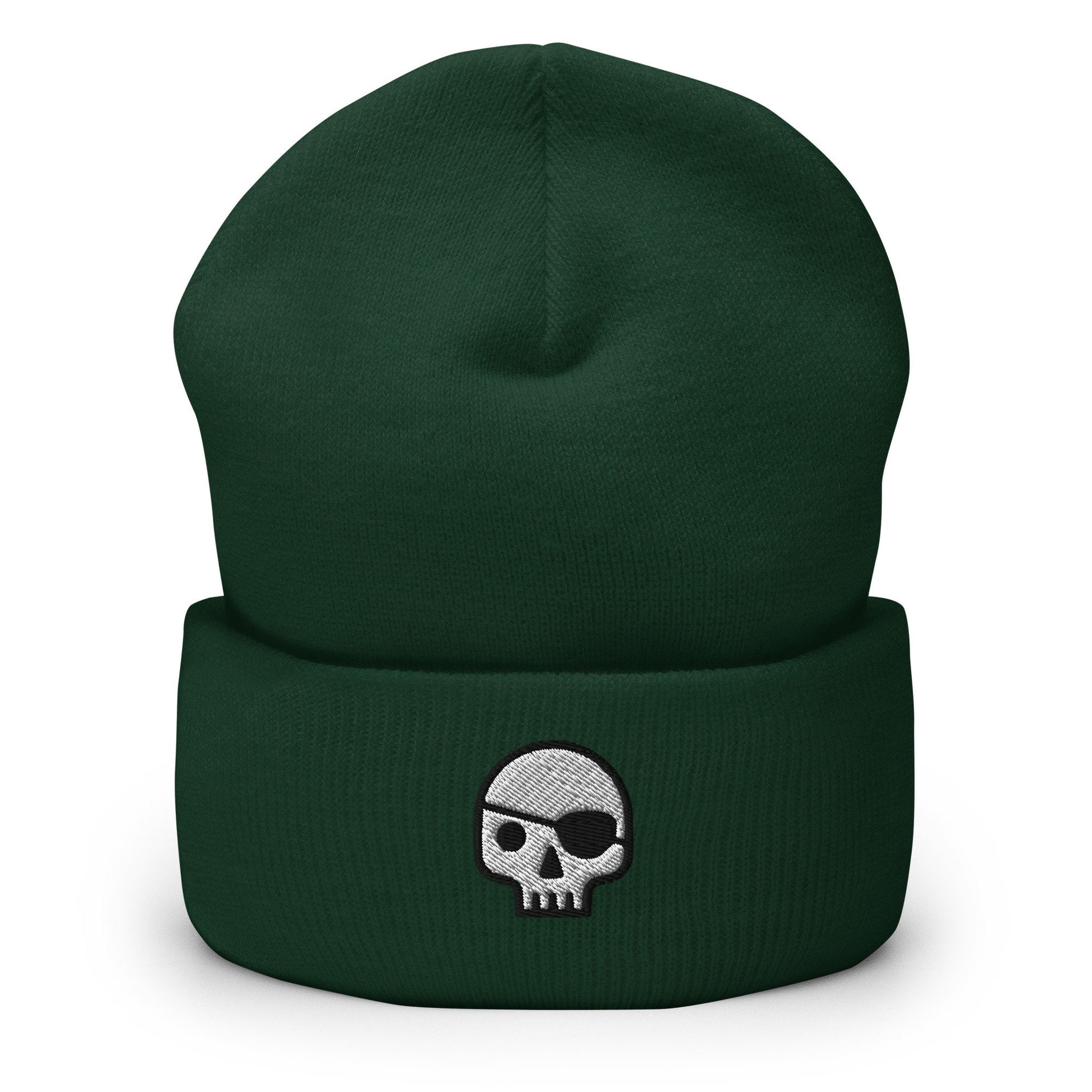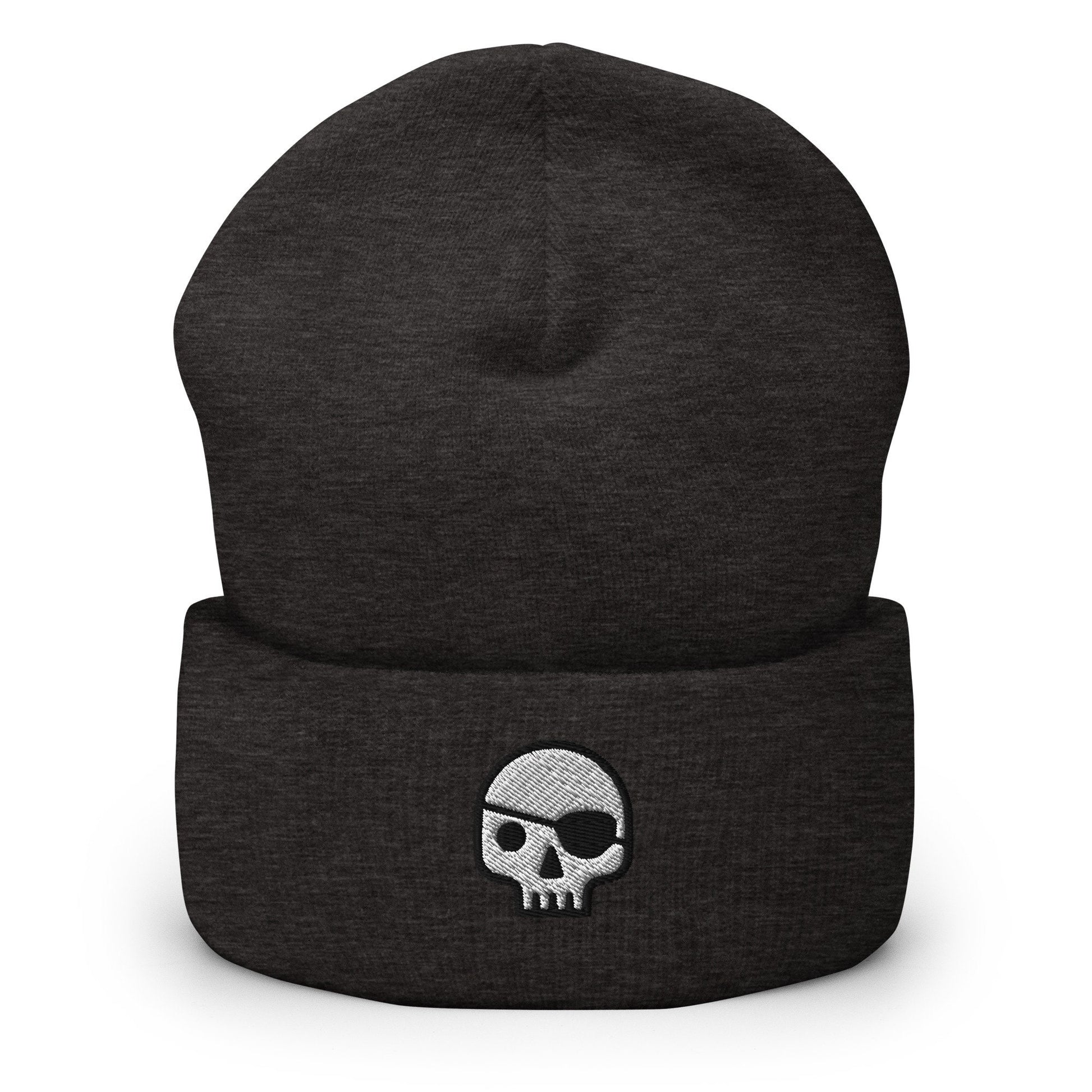 Pirate Skull Embroidered Beanie, Handmade Cuffed Knit Unisex Slouchy Adult Winter Hat Cap Gift