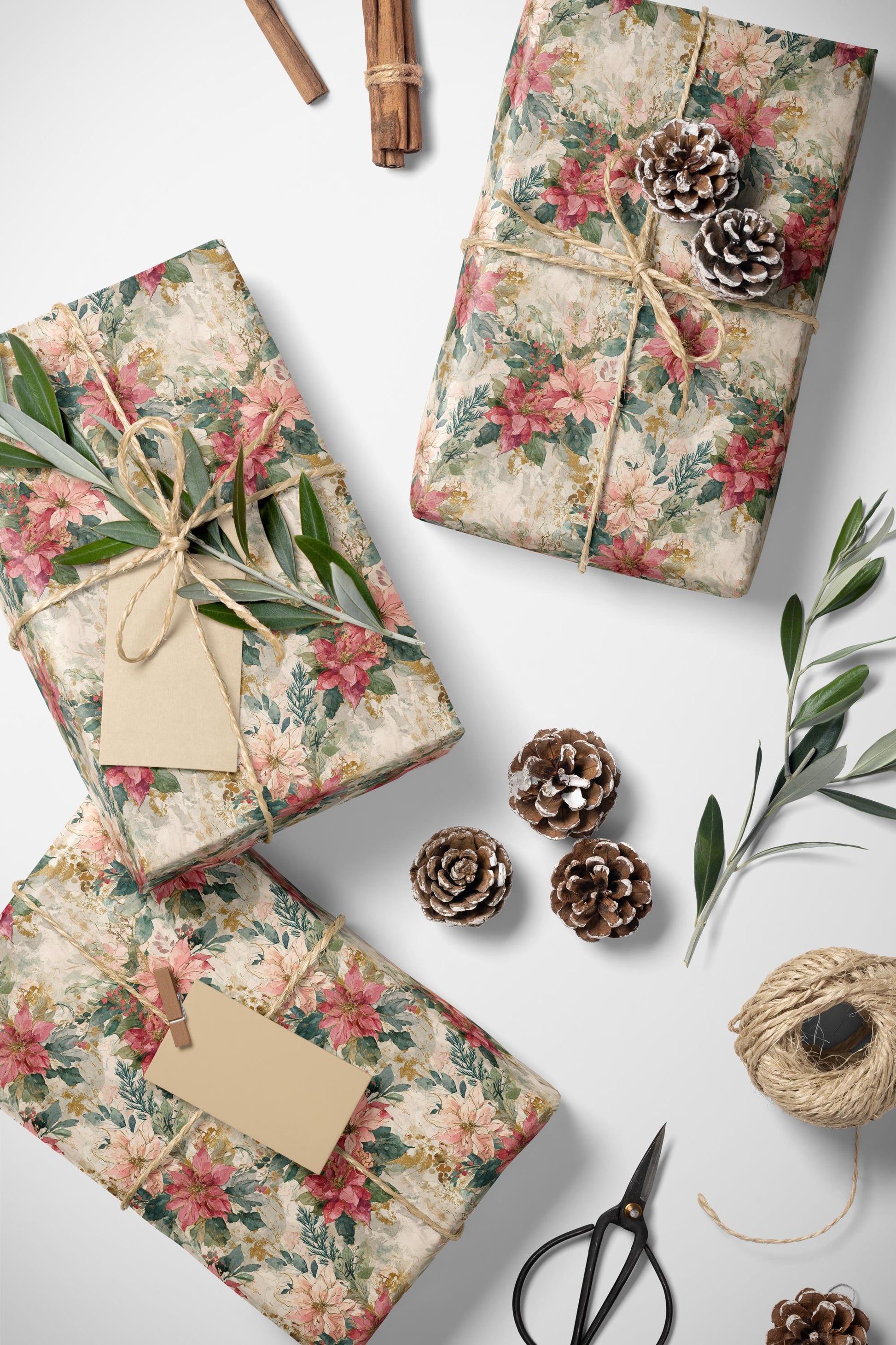 Poinsettia Christmas Gift Wrap Roll, Elegant Watercolor Floral Design for Holiday Wrapping #14