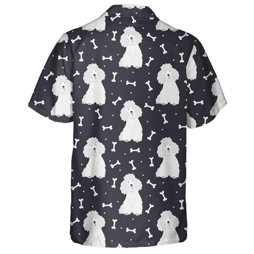 Poodles With Bones On Black Background Hawaiian Shirt,Hawaiian Shirt Gift, Christmas Gift