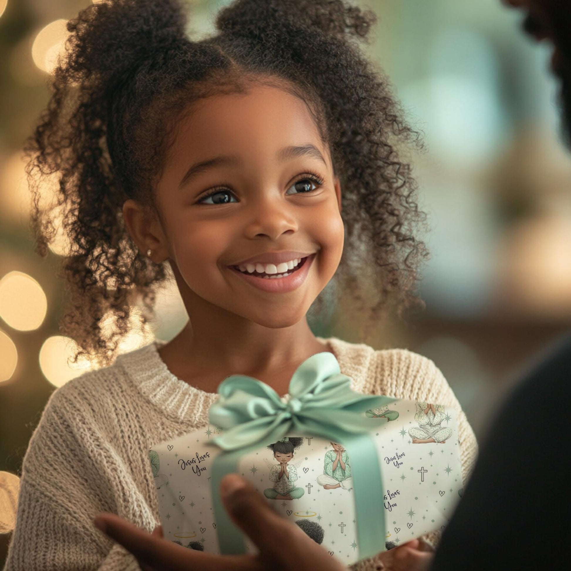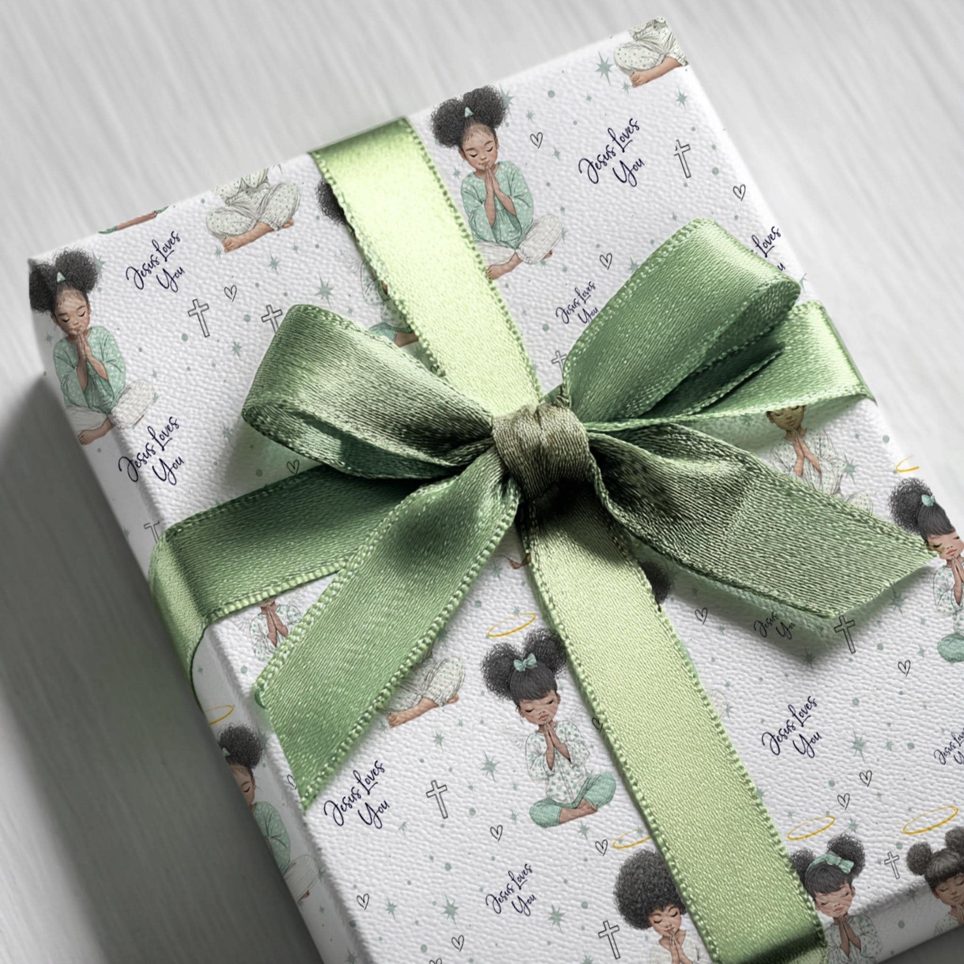 Praying Little Black Angel Wrapping Paper: Perfect for Baby Showers, Birthdays, Parties, Gift Wrap, and Celebrations, Biblical Gift Wrapping