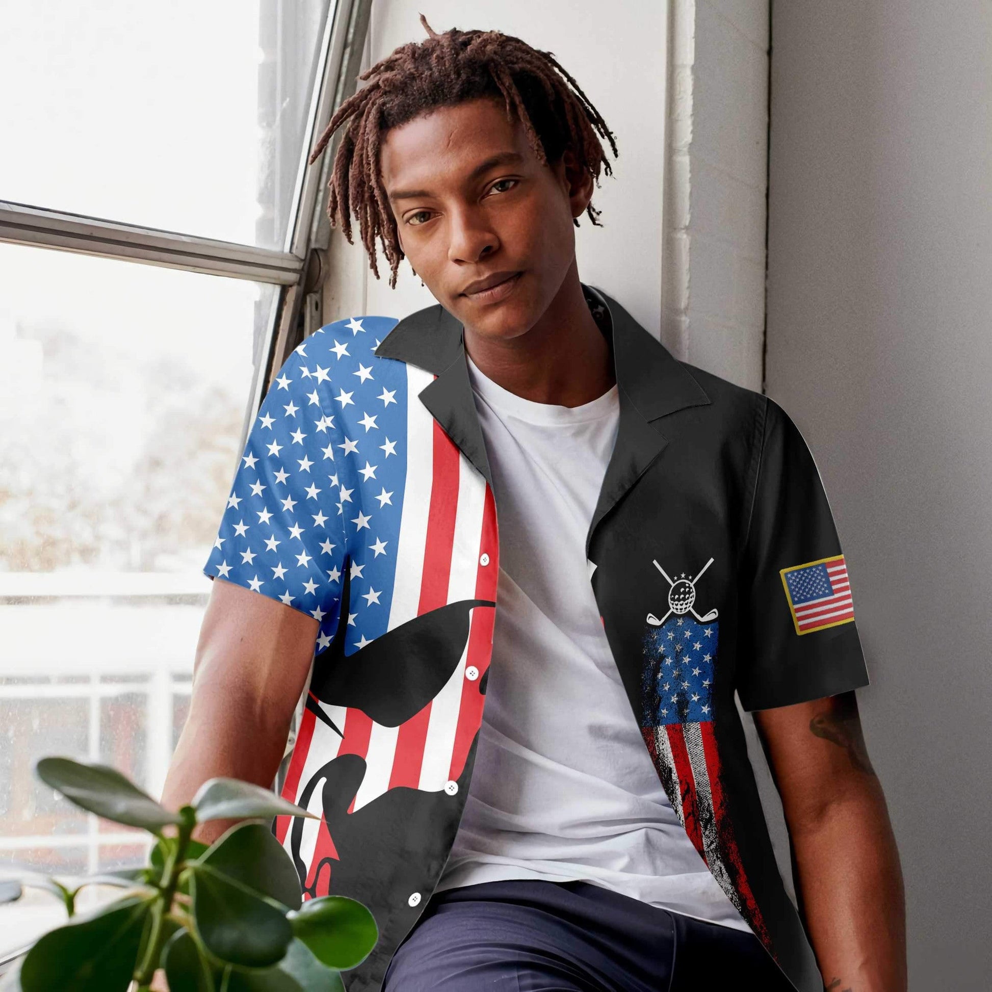 Pretty Skull Golf With American Flag Hawaiian Shirt,Hawaiian Shirt Gift, Christmas Gift