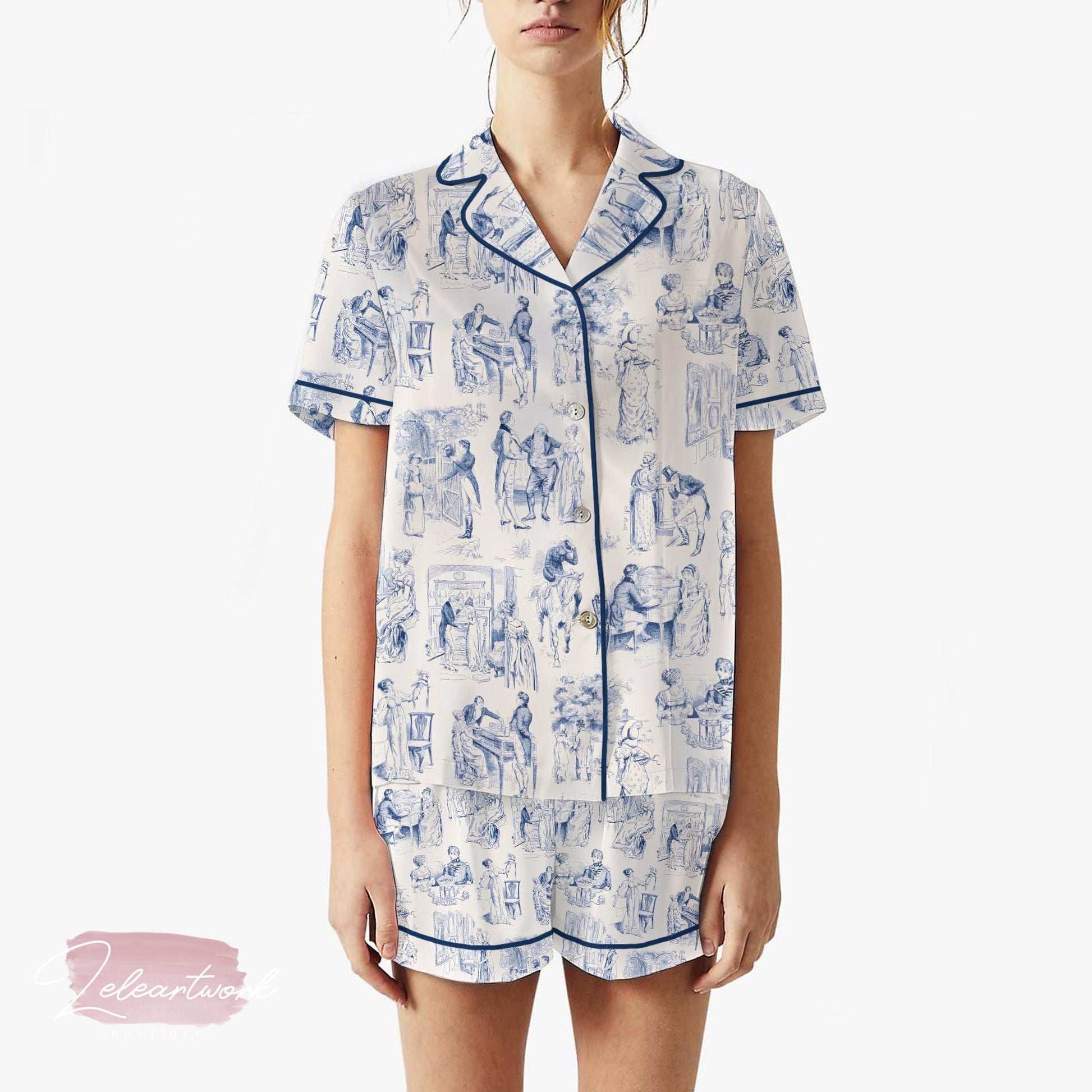 Pride and Prejudice Fanart | Silky Satin Pajama Set for Women | Jane Austen Toile Print Sleepwear | Literary Loungewear Gift