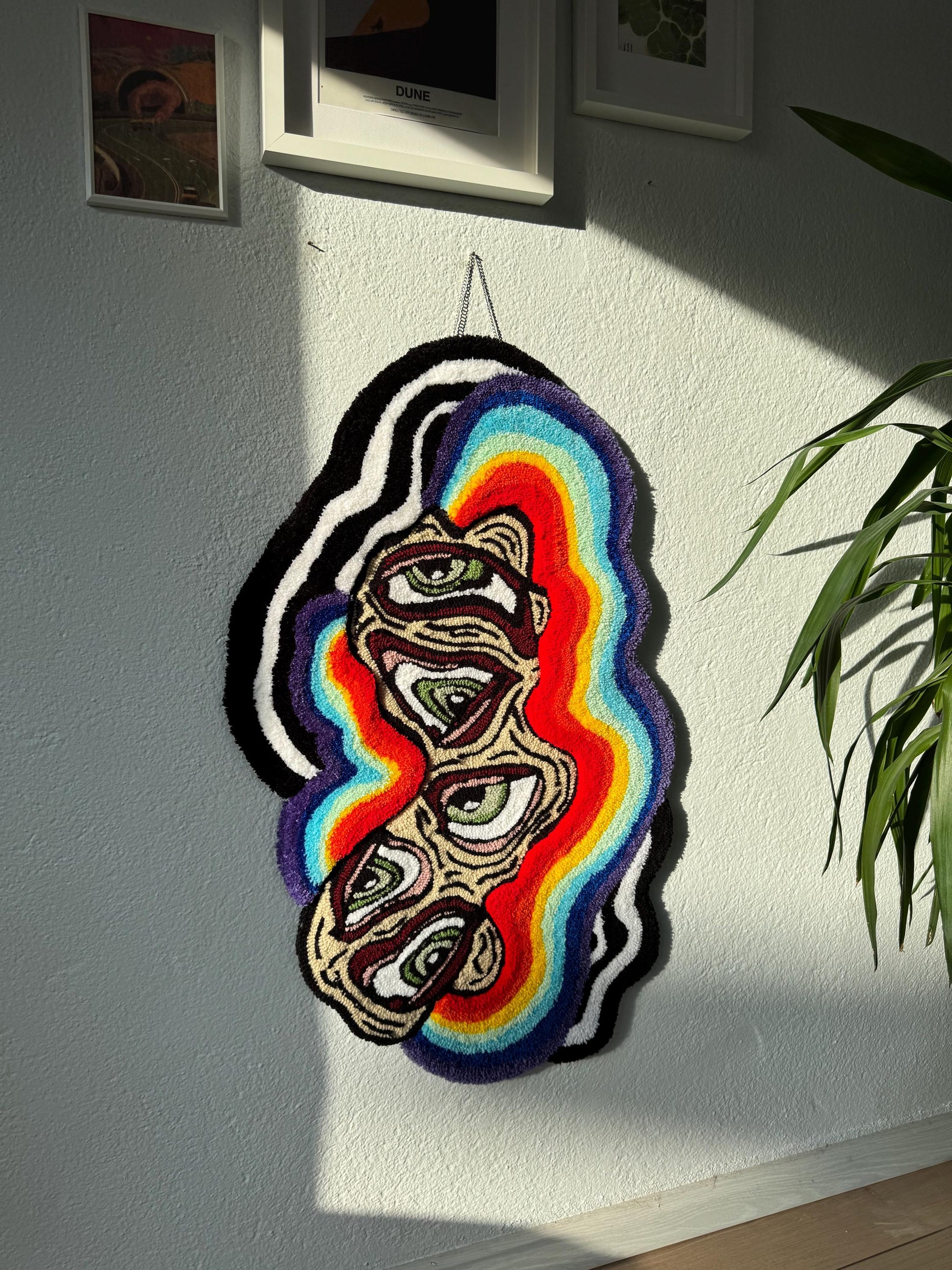 Psychedelic Rainbow Fluid Eyes 3D Fluffy Handmade Tufted Rugs, Multiple Textured Rug, Eye Tufted Rug, Tufted Wall Art, Tufted Wall Hangings