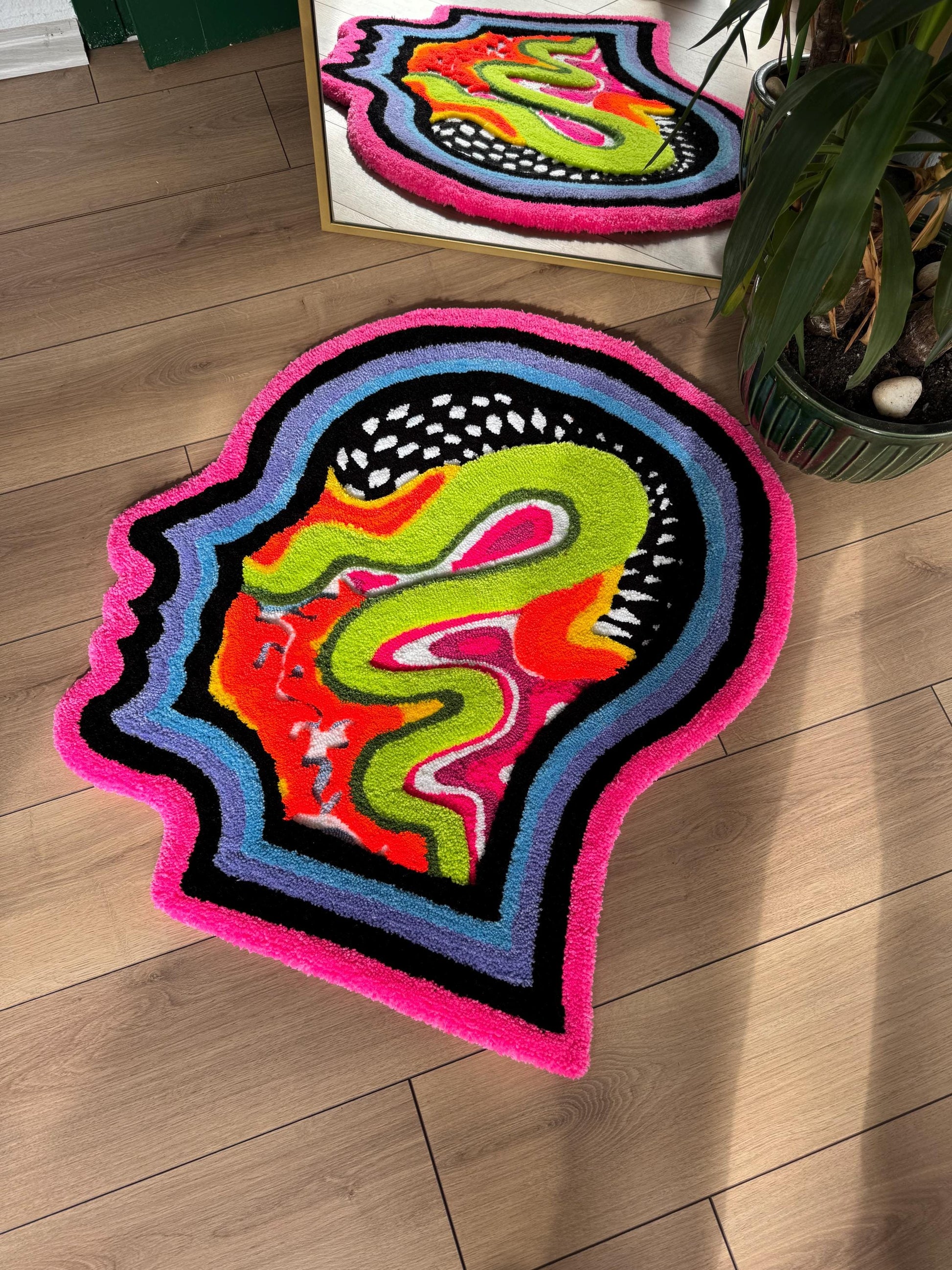 Psychedelic Tufted Rug - Trippy Handmade Wall Hanging - Colorful Groovy Carpet