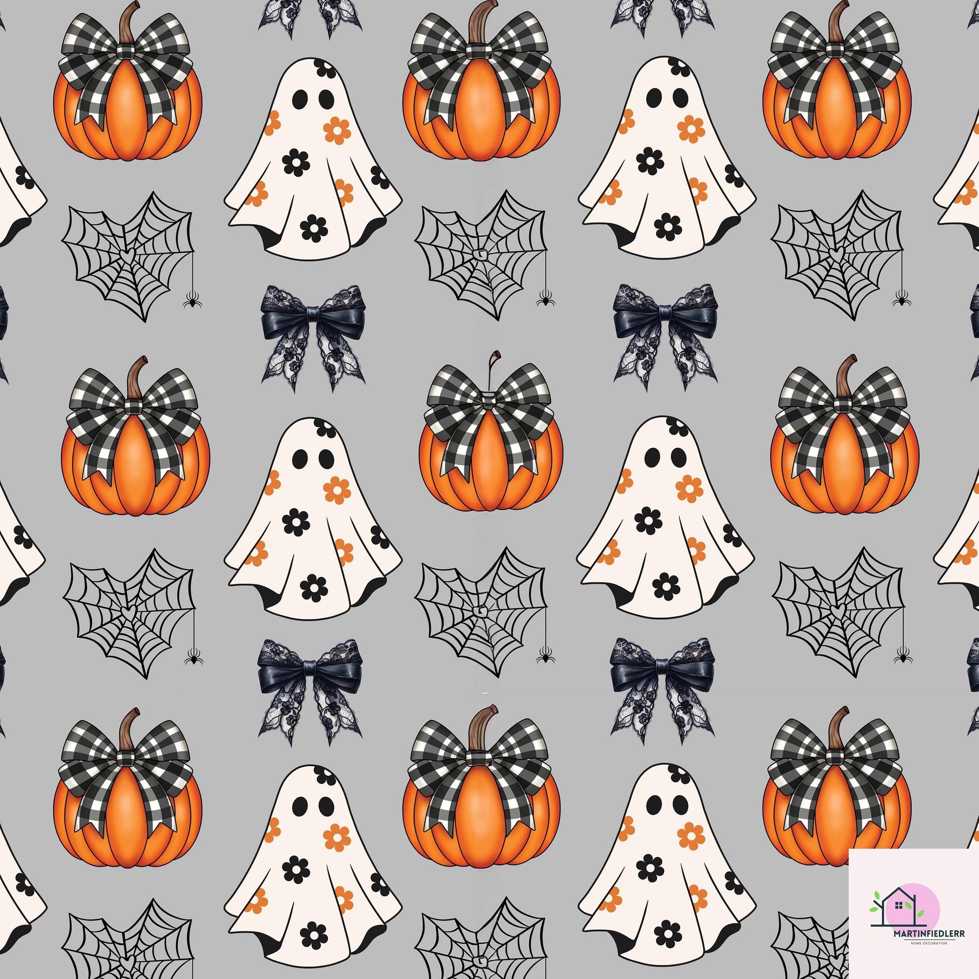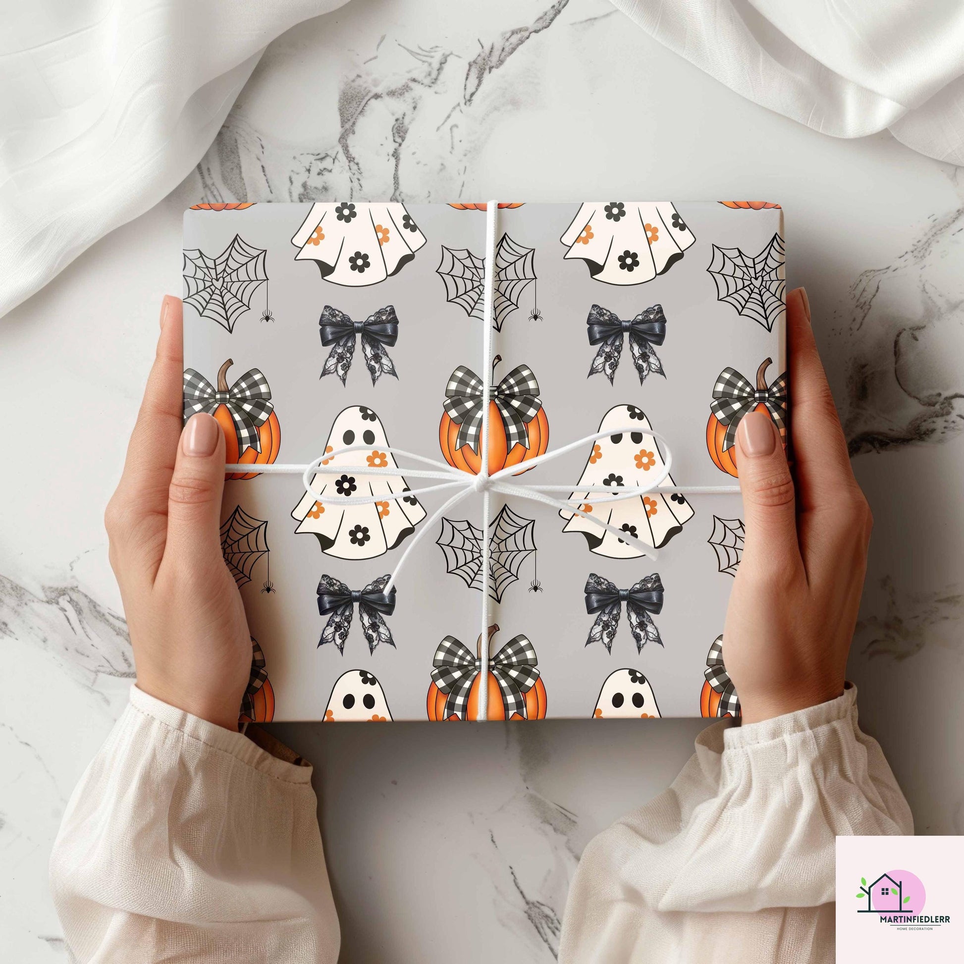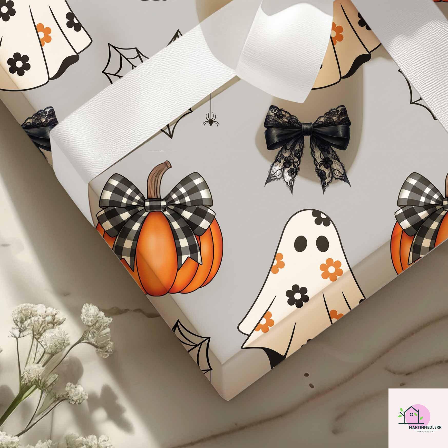 Pumpkin Ghost Halloween Wrapping Paper: Recycled Gingham Print
