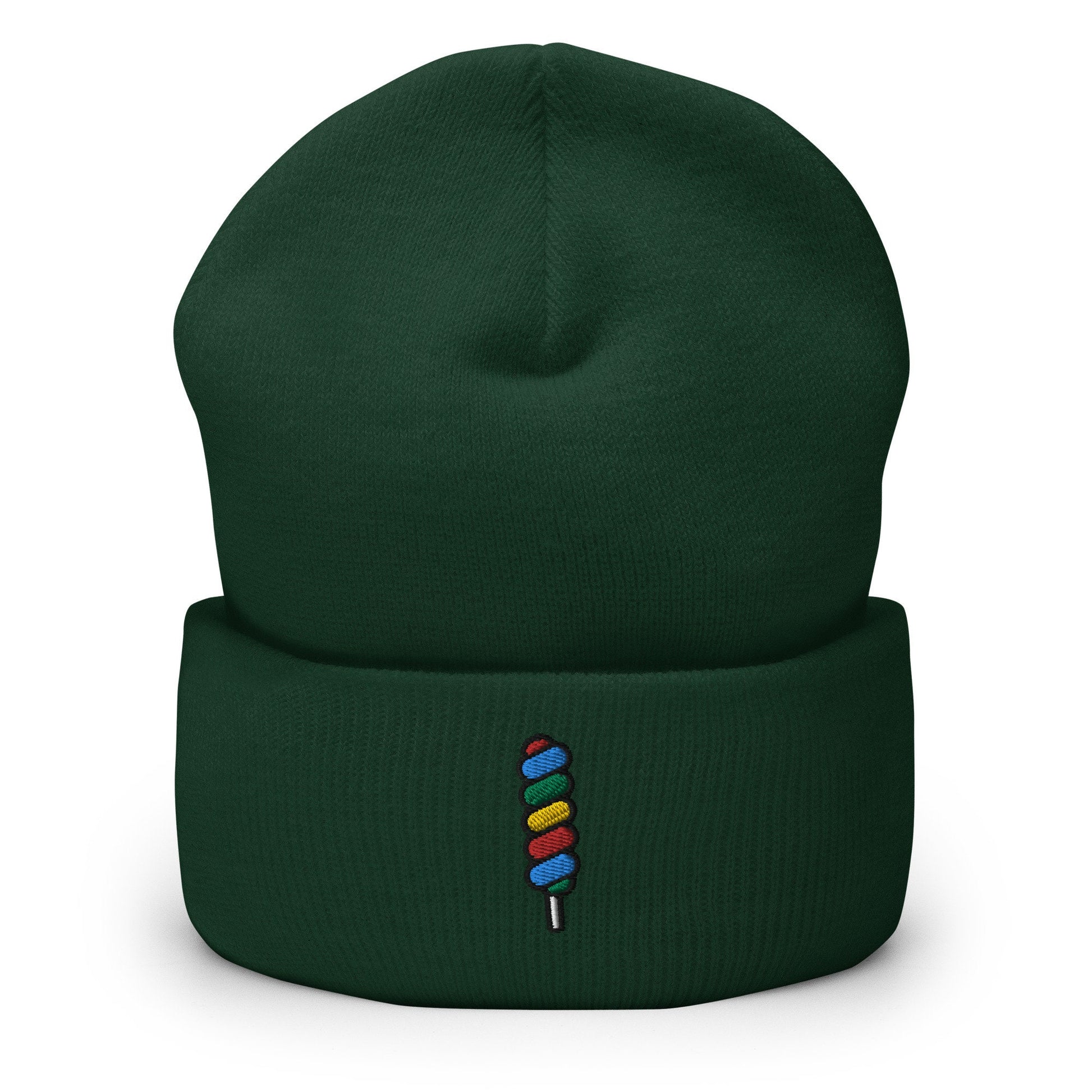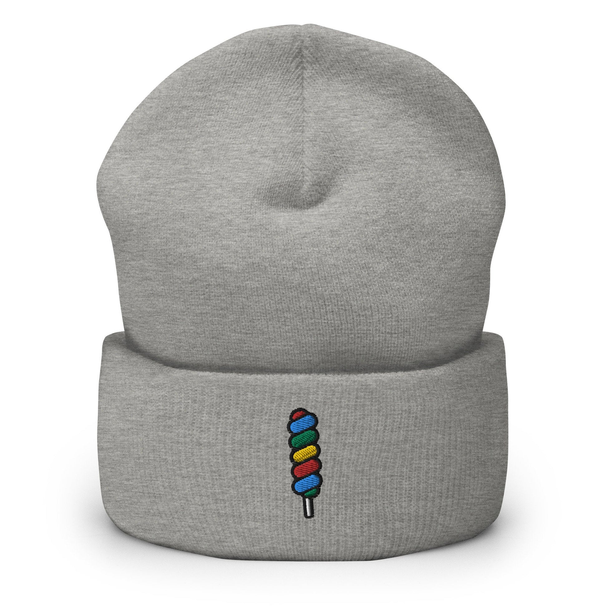 Rainbow Twisty Swirl Lollipop Candy Embroidered Beanie, Handmade Cuffed Knit Unisex Slouchy Adult Winter Hat Cap Gift