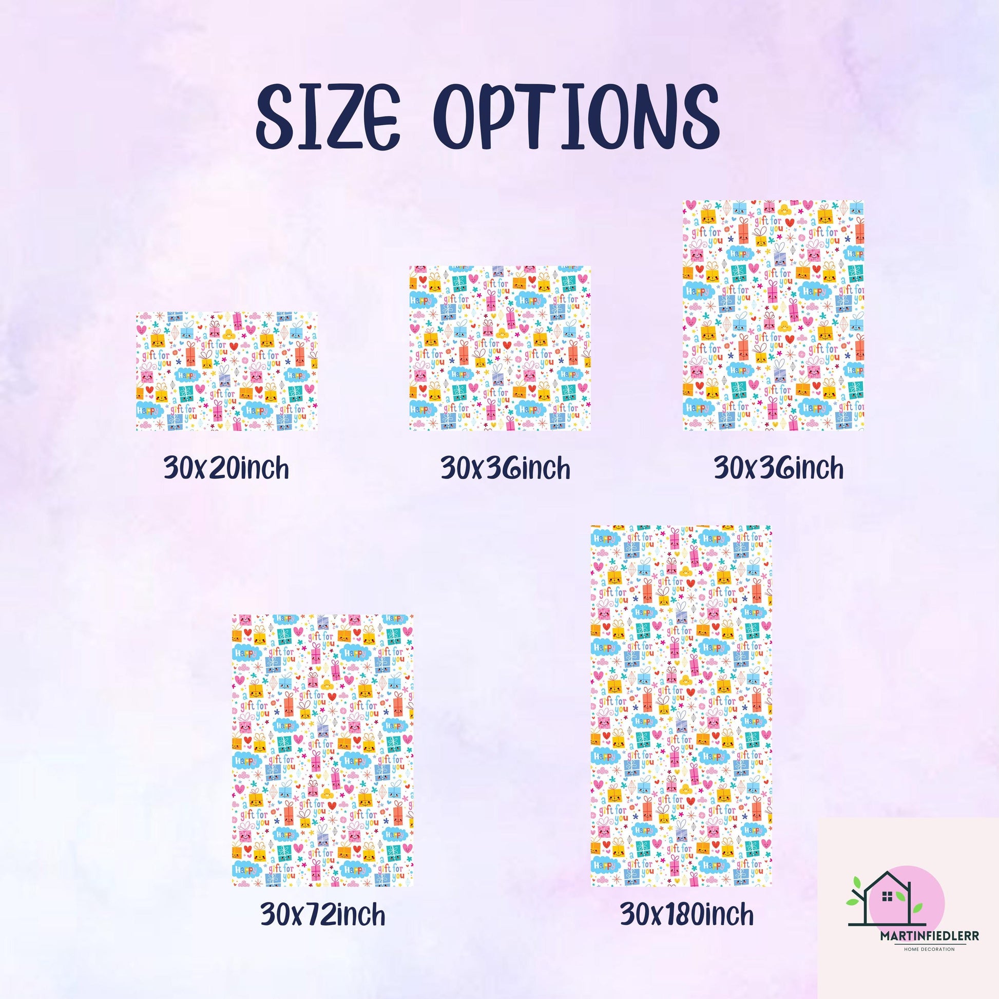 • 1 roll/sheet of custom-printed gift wrap in your selected size and finish