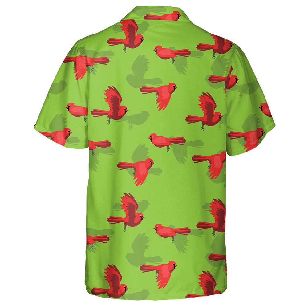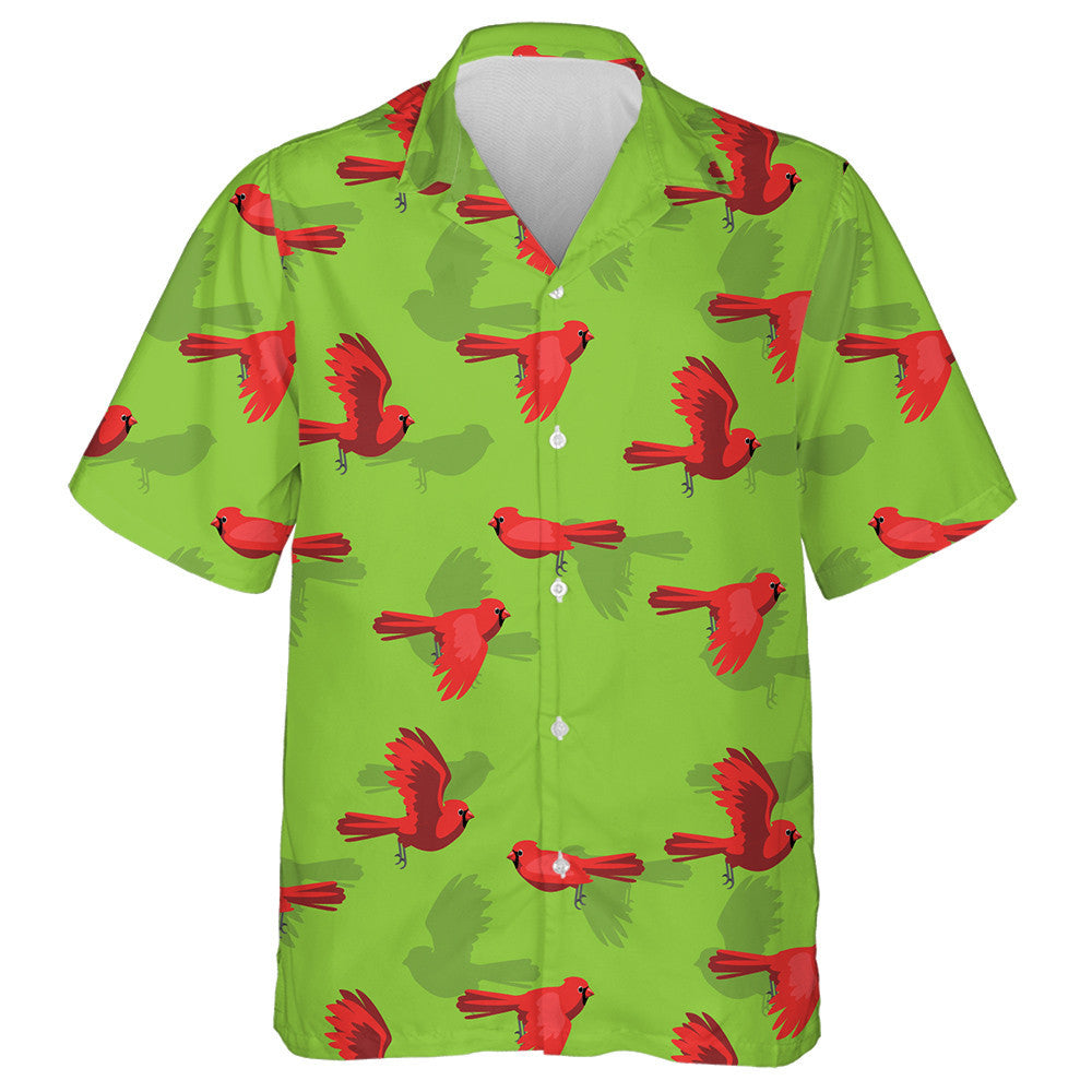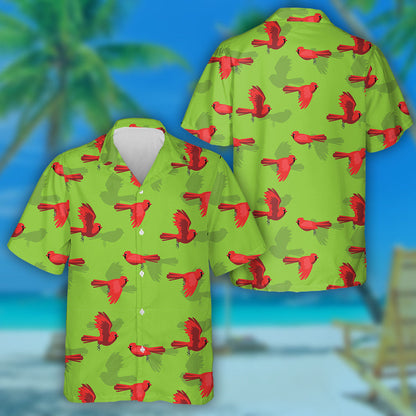 Red Cardinal Bird Flying Character Green Background Hawaiian Shirt, Hawaiian Shirt Gift, Christmas Gift