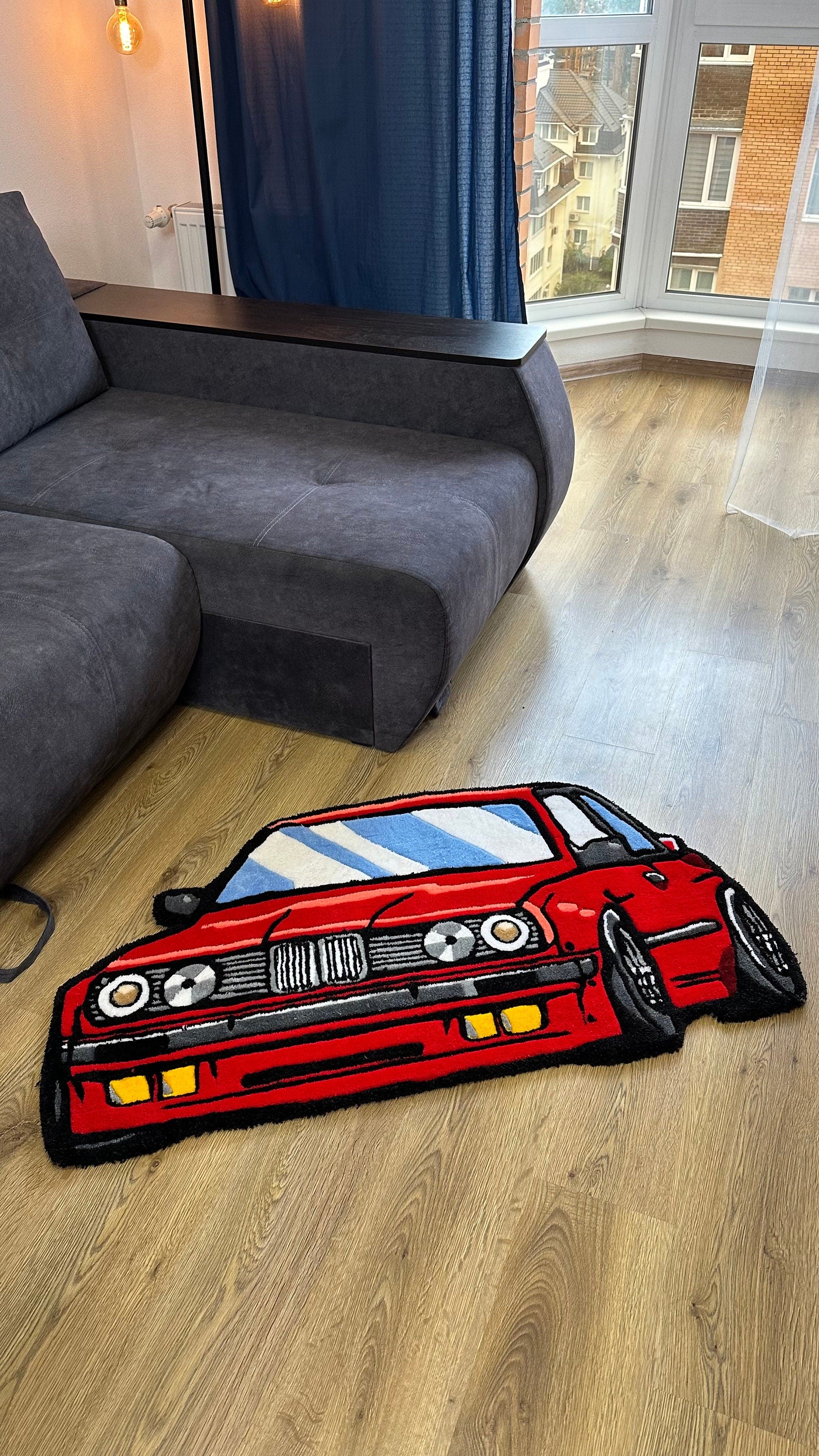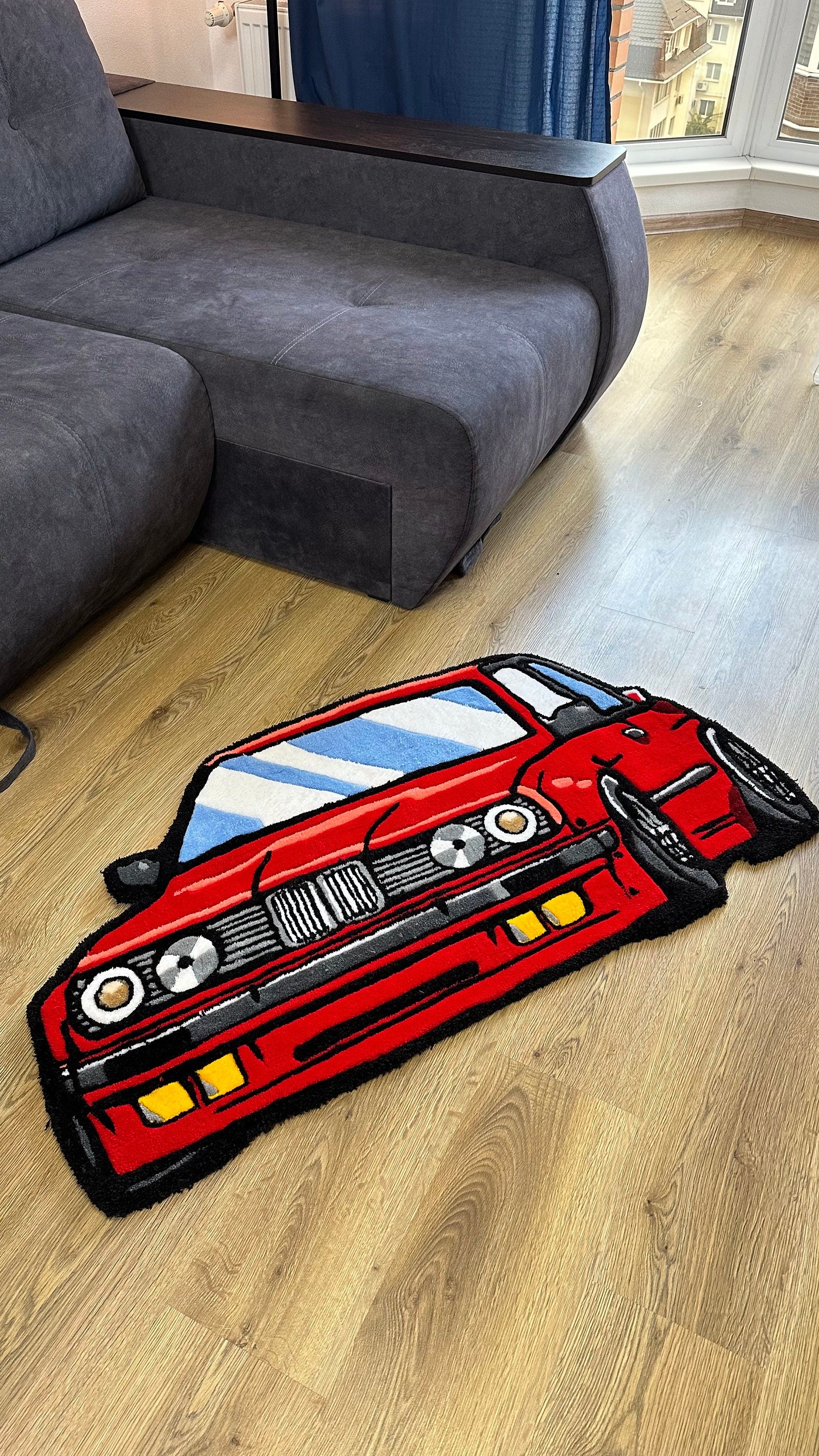 Red JDM Car Tufted Rug – Custom Handmade Drift Car Carpet, Cool Racing Room Decor for Car Lovers, Auto Enthusiast Gift, Ready to Ship!