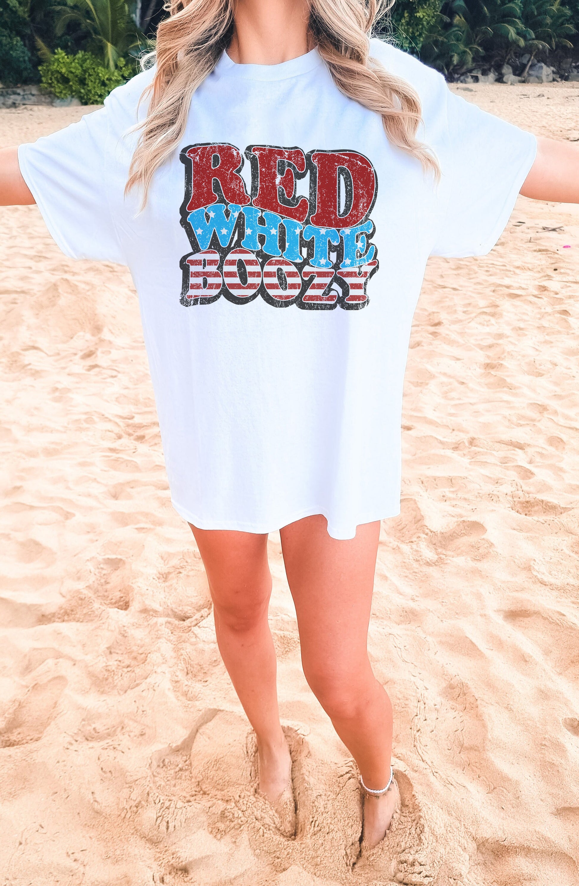 Red White and Boozy Shirt, Retro Fourth Of July T-shirt, 4th Of July Independence Day Tee Shirt, Patriotic America Shirt, Freedom Tee