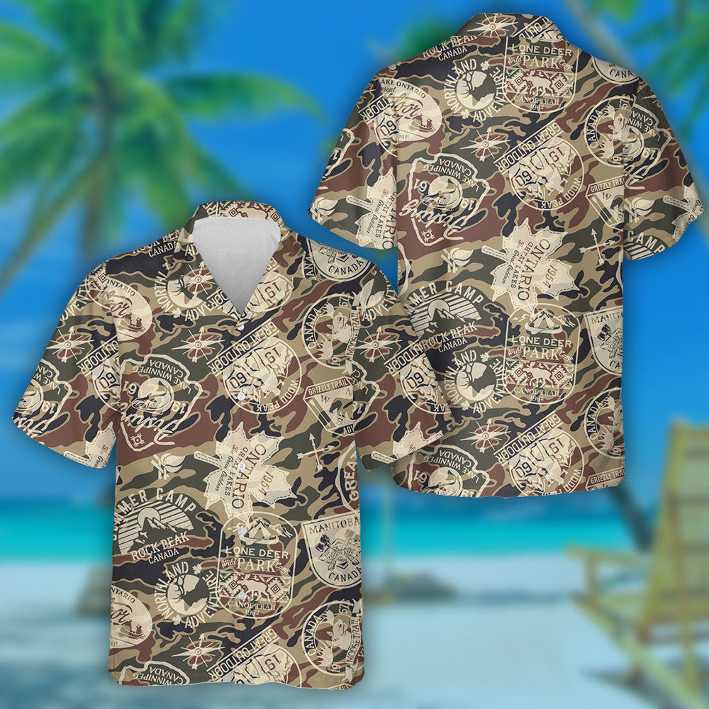 Retro Canada Stickers Camouflage Background Pattern Hawaiian Shirt,Hawaiian Shirt Gift, Christmas Gift