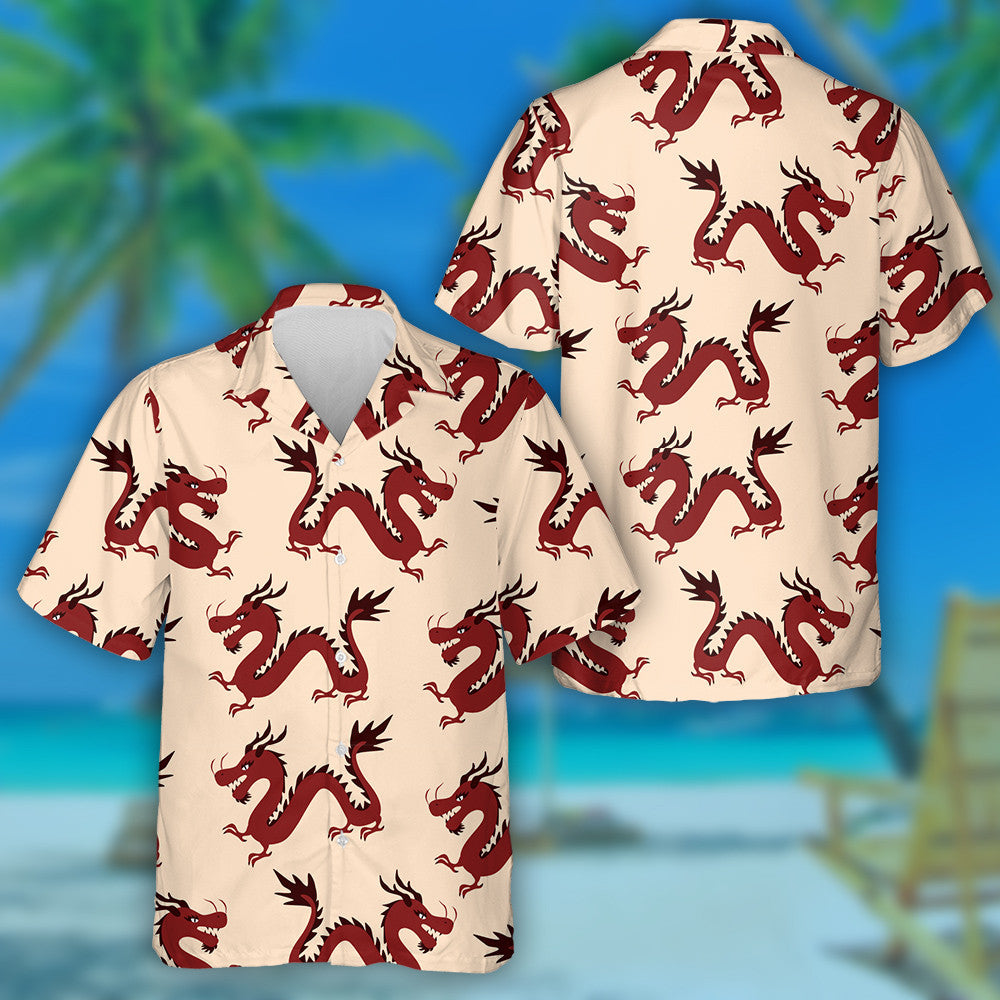 Retro Drawing Traditional Chinese Red Dragon Hawaiian Shirt,Hawaiian Shirt Gift, Christmas Gift