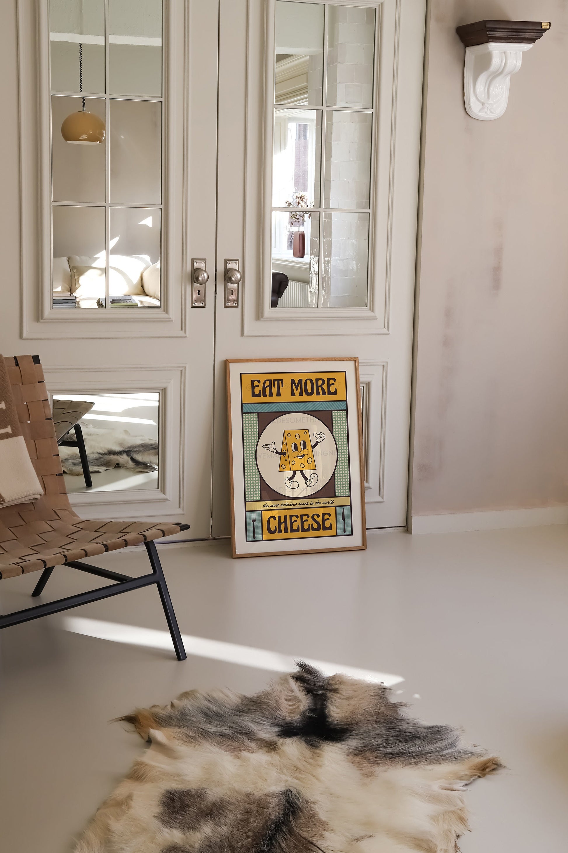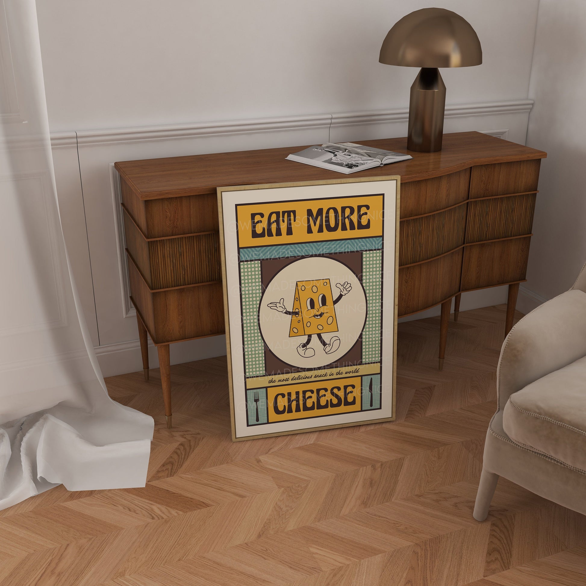 Retro Eat More Cheese Poster, Food Print, Modern Kitchen Decor, Retro Poster, Pop Art, Kitchen Art, Exhibition Poster, Retro Character Print