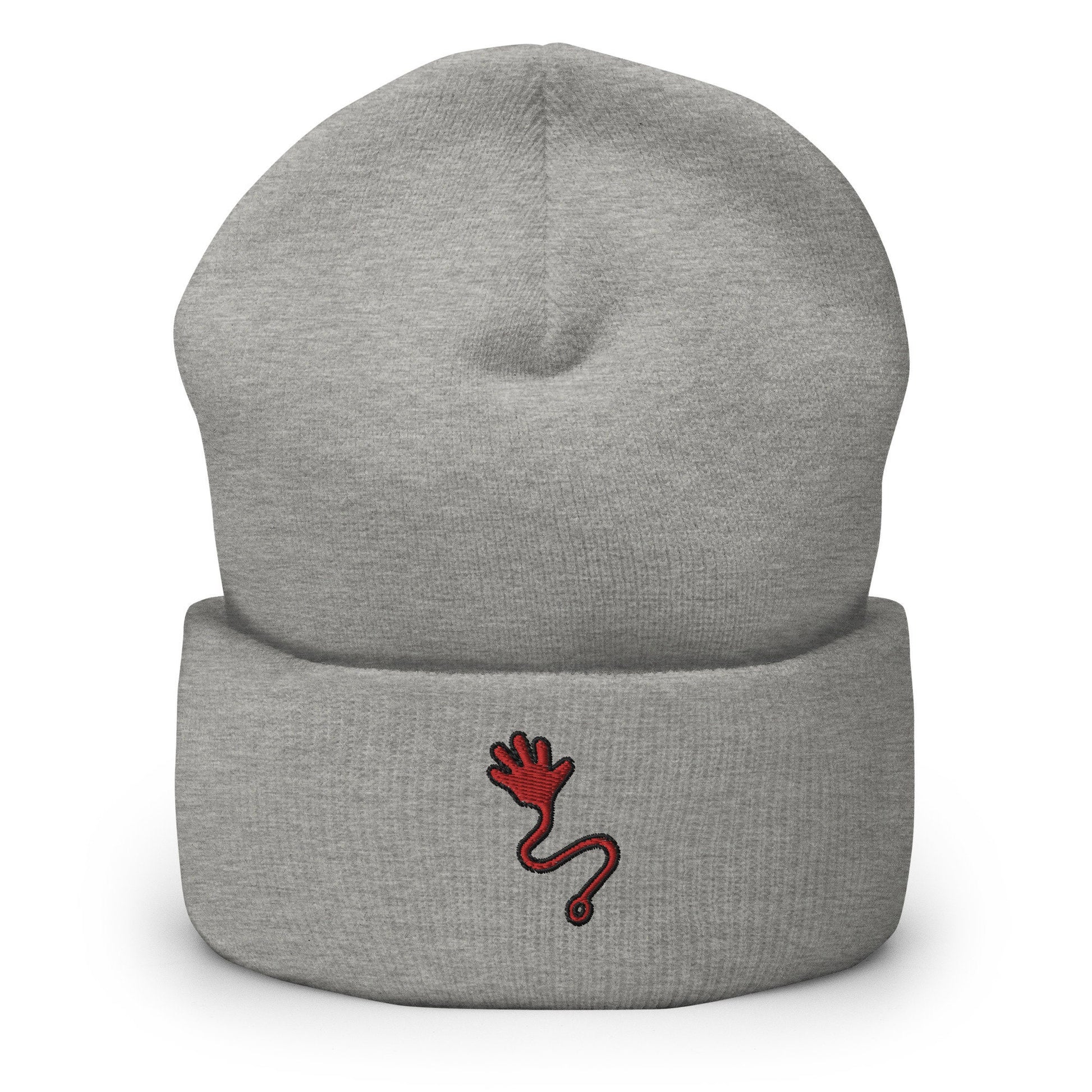 Retro Sticky Hand Toy Embroidered Beanie, Handmade Cuffed Knit Unisex Slouchy Adult Winter Hat Cap Gift