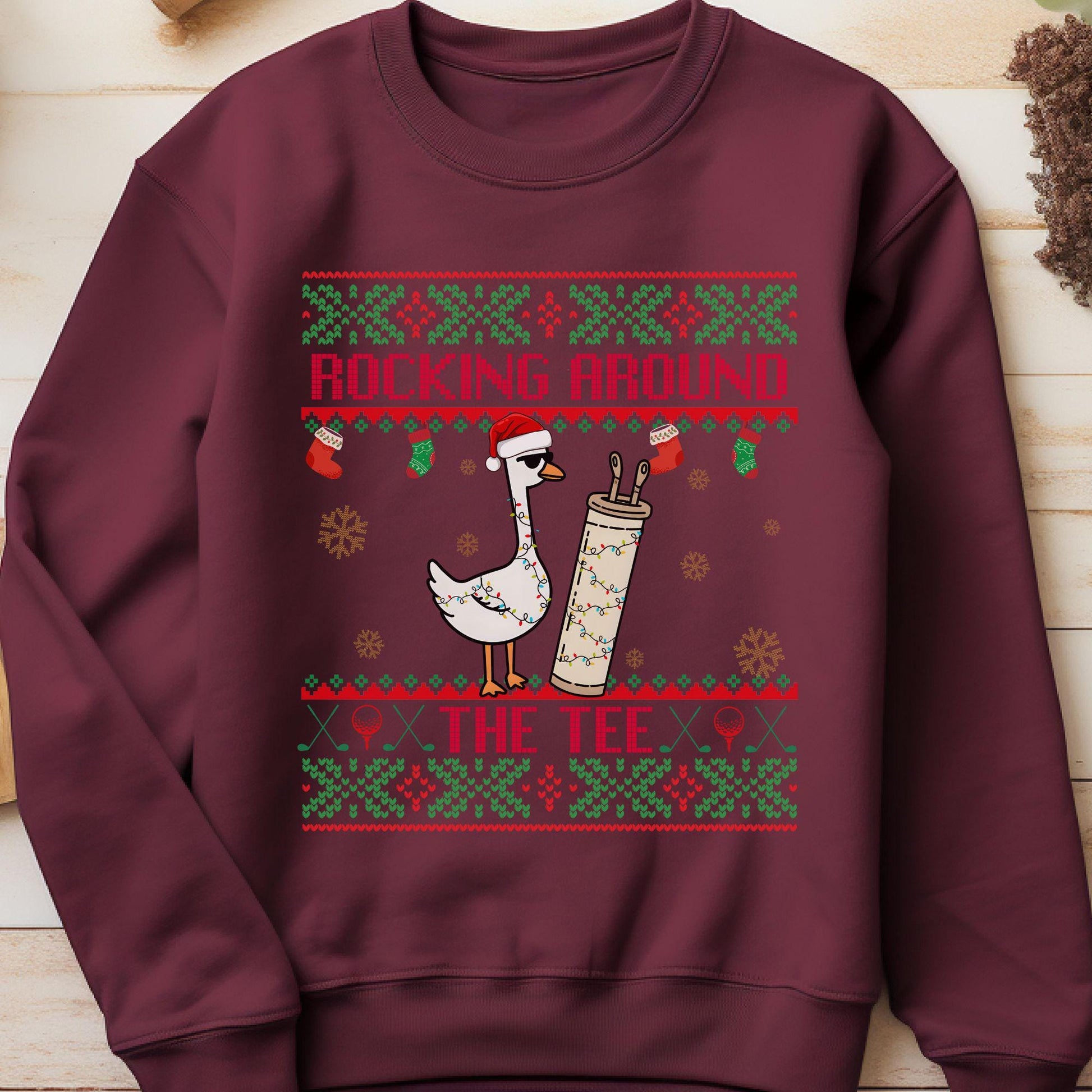 Rockin' Around the Christmas Tree Shirt Silly Goose Sweatshirt Golf Ugly Sweater Secret Santa Gift Ideas Ugly Sweater Party