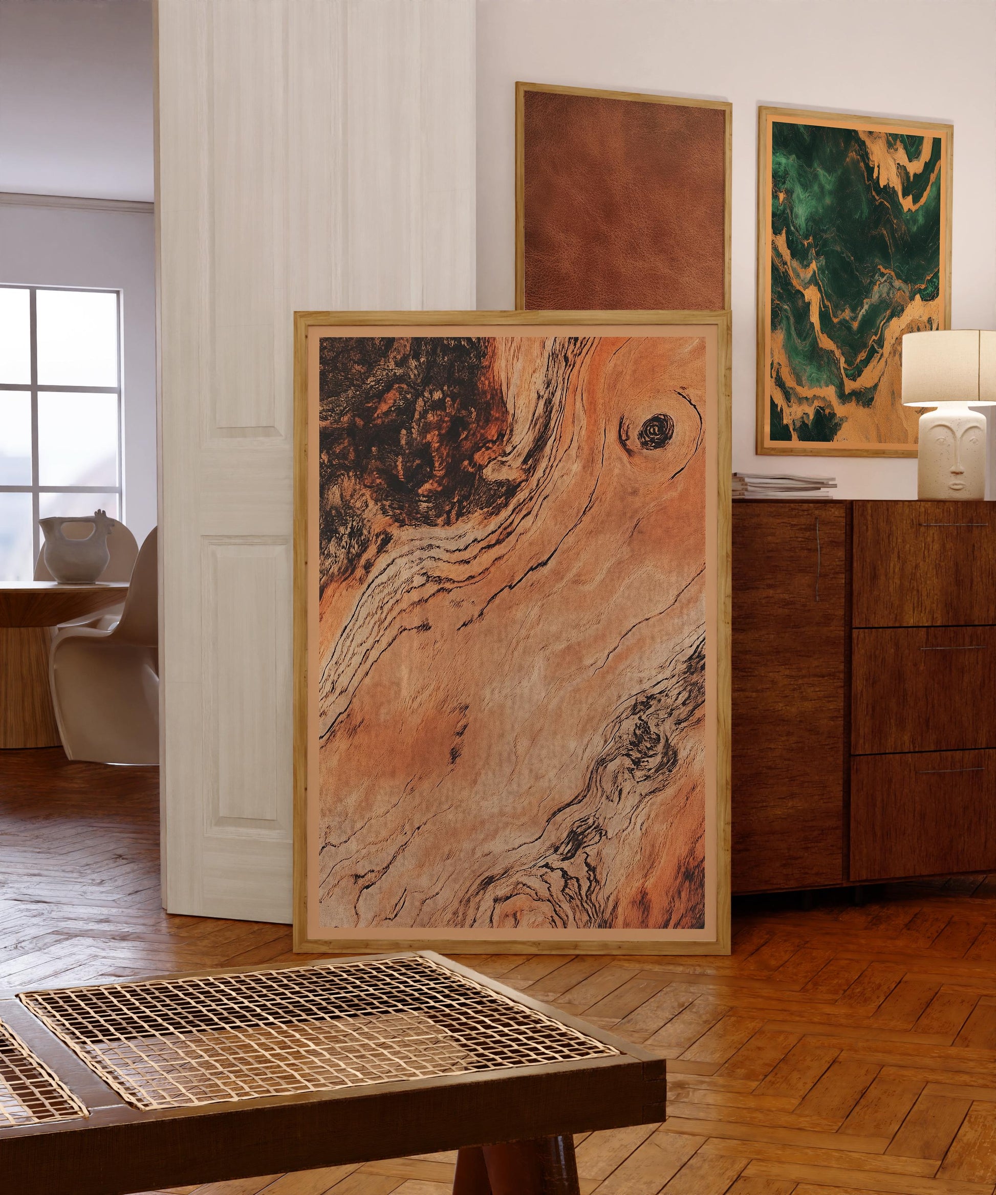 Rose Wood Wall Decor Rustic Boho Style Print Luxury Antique Wooden Style Living Room Wall Art Mid Century Modern Minimalist Simplistic Art