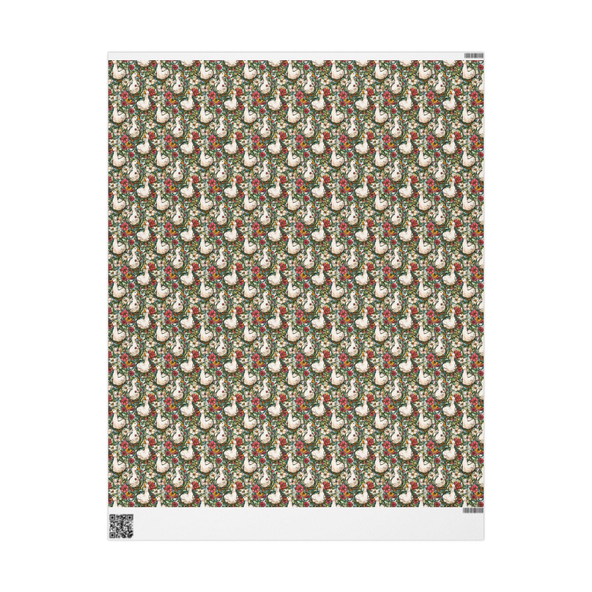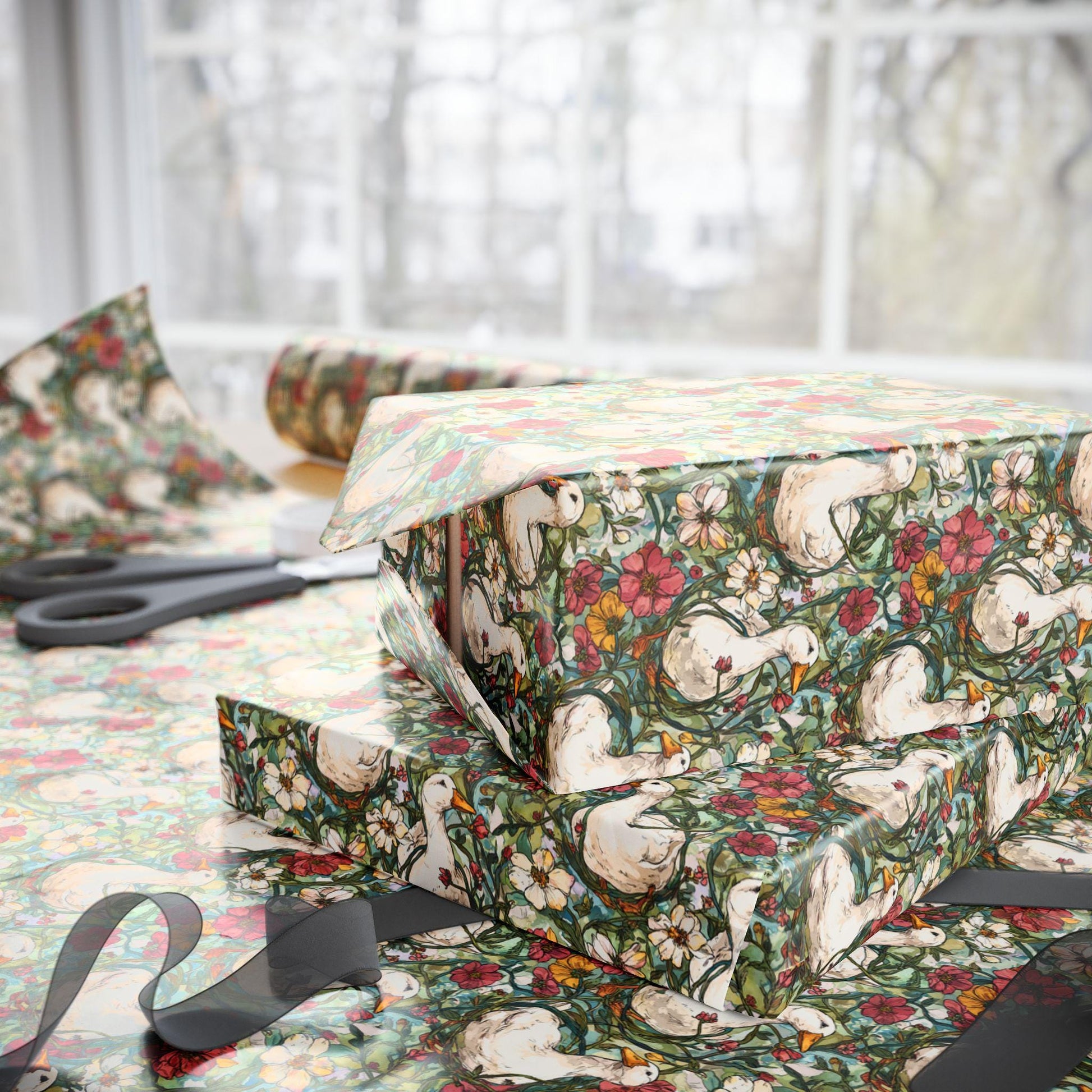 Rustic Goose and Wildflower Wrapping Paper for Mom or Grandma Birthday | Whimsical Farmhouse Baby Shower Gift Wrap for Florals Plant lovers