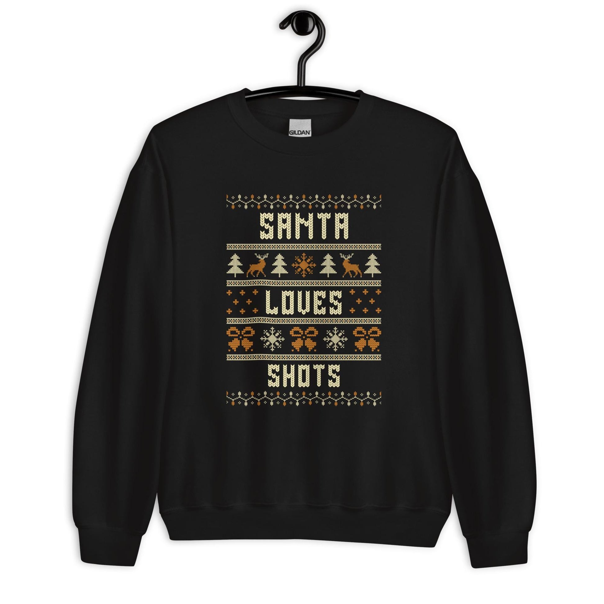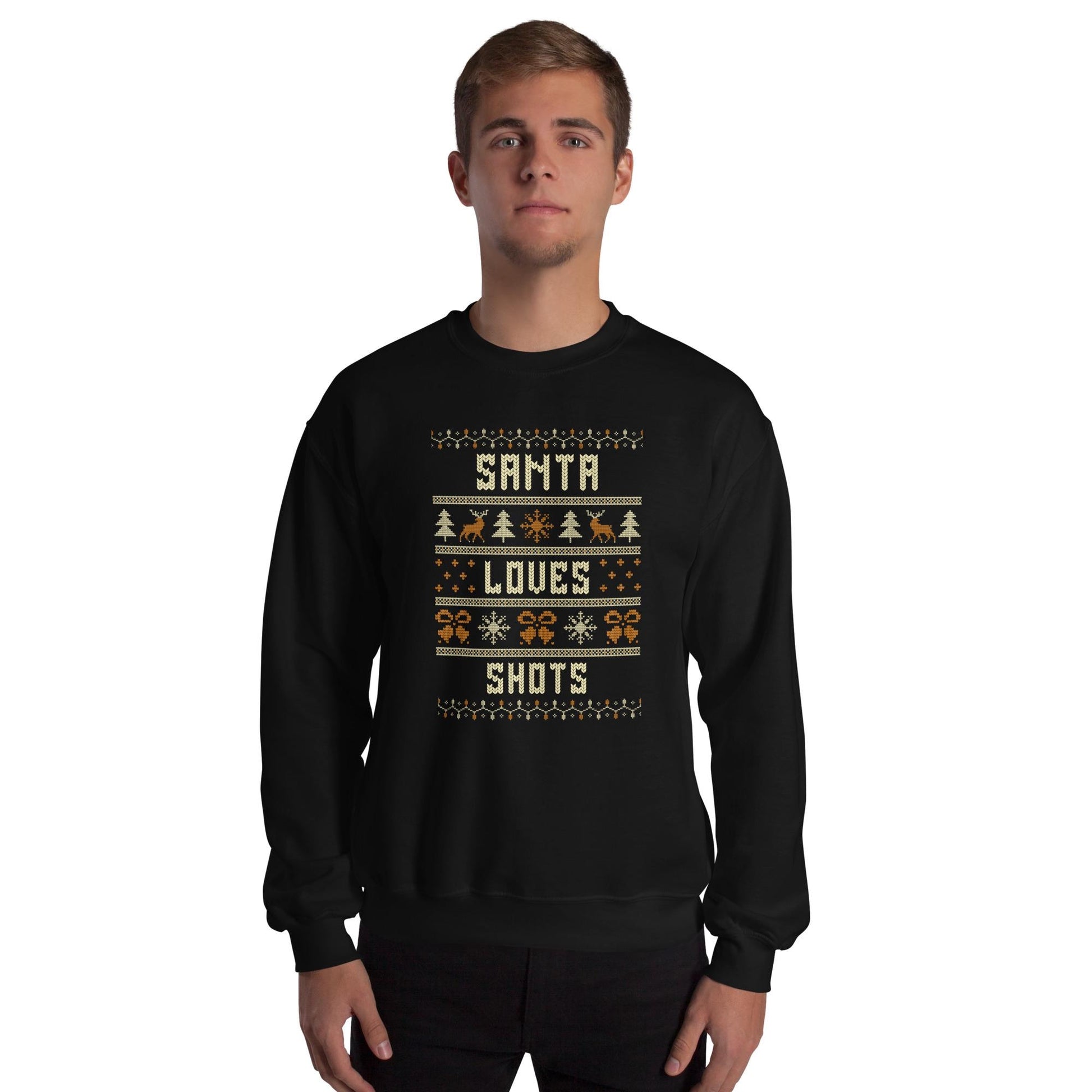 Santa Loves Shots Christmas Jumper | Funny Booze Xmas | Ugly Knitwear for Festive Parties | Secret Santa Drinking Gift