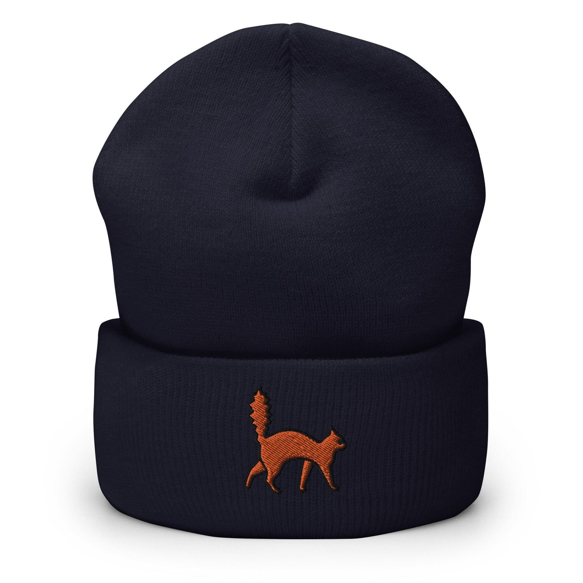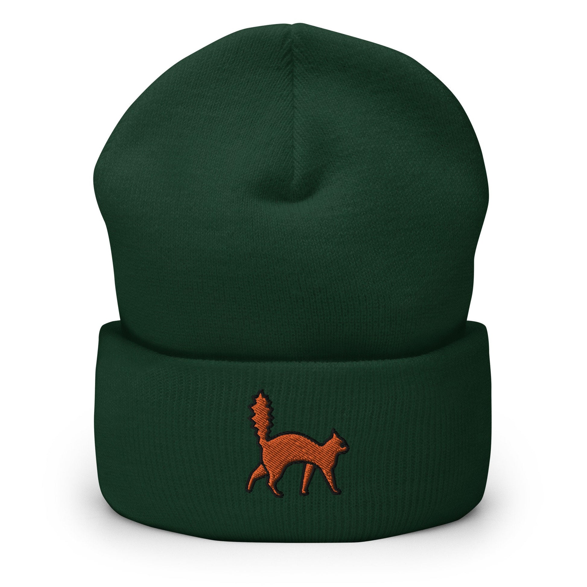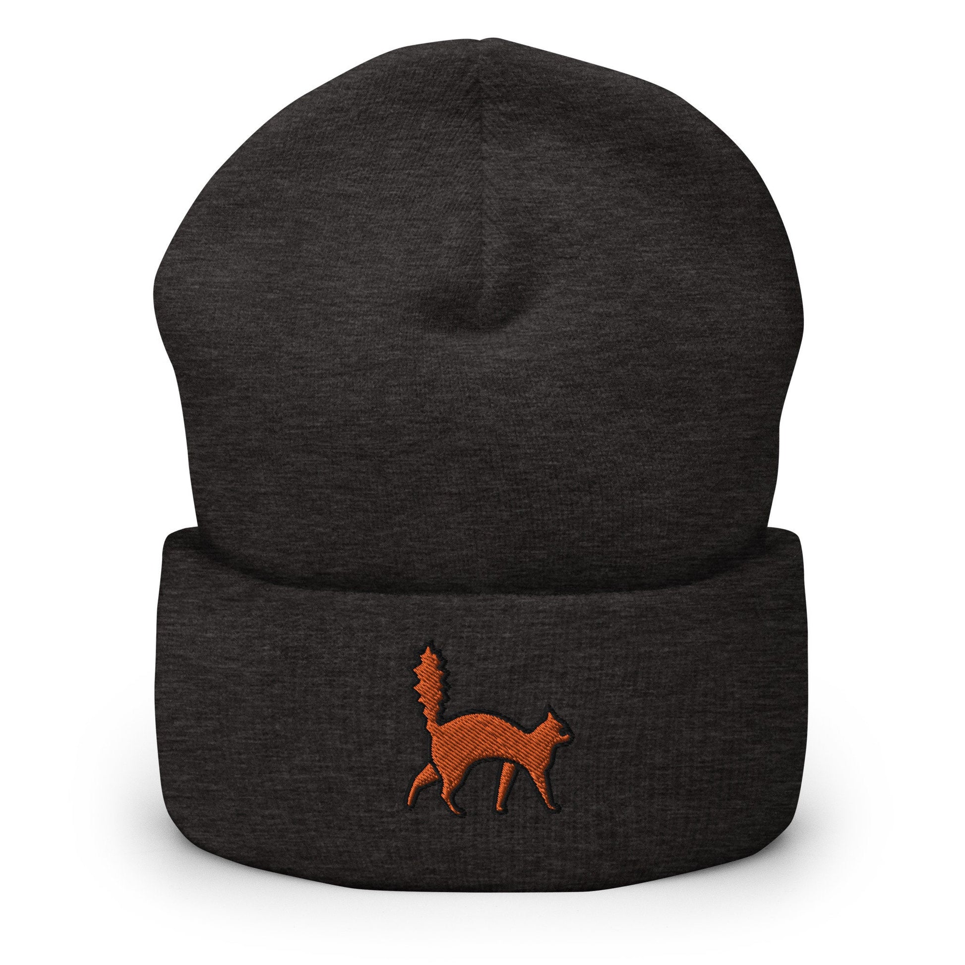 Scaredy Cat Embroidered Beanie, Handmade Cuffed Knit Unisex Slouchy Adult Winter Hat Cap Gift