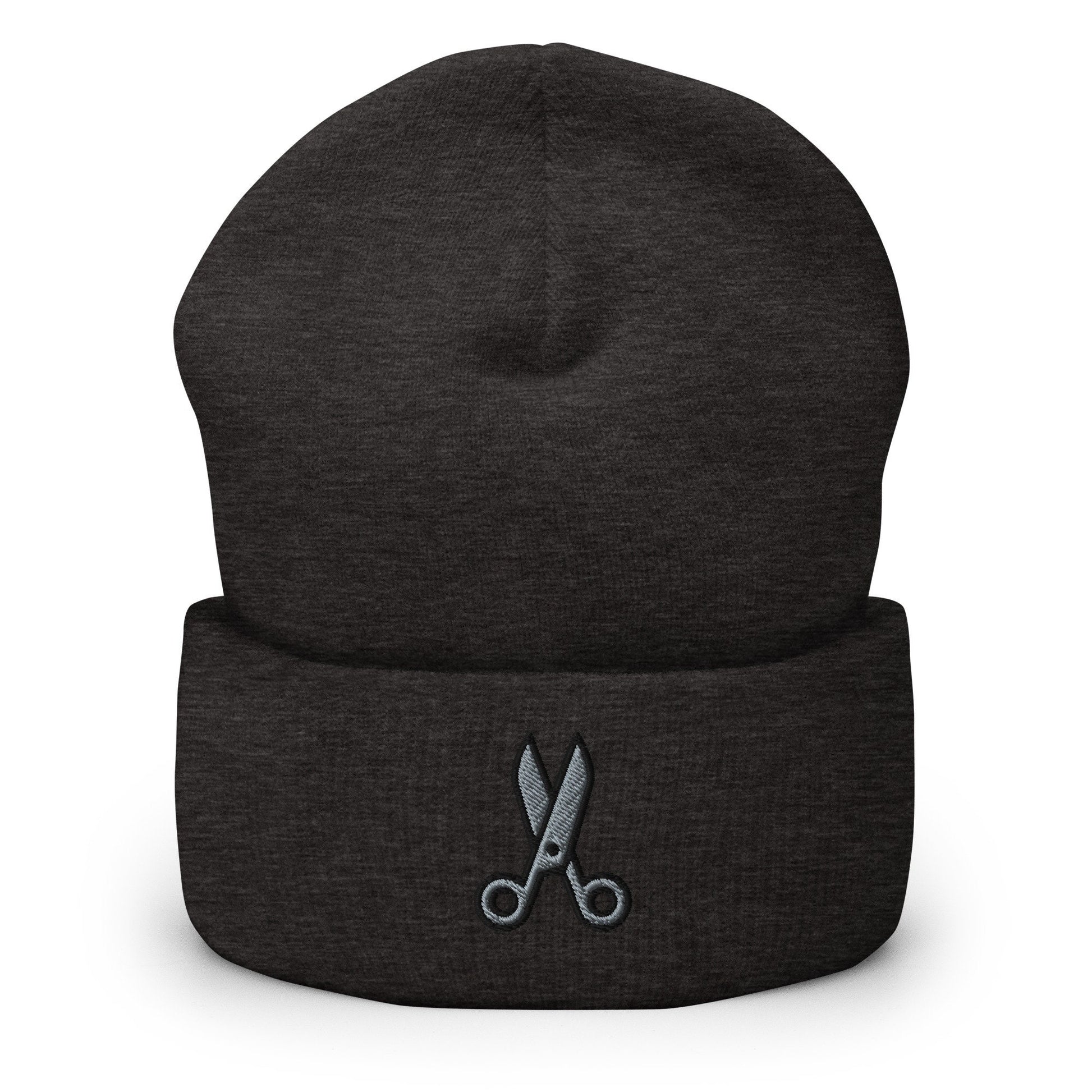 Scissors Clippers Embroidered Beanie, Handmade Cuffed Knit Unisex Slouchy Adult Winter Hat Cap Gift