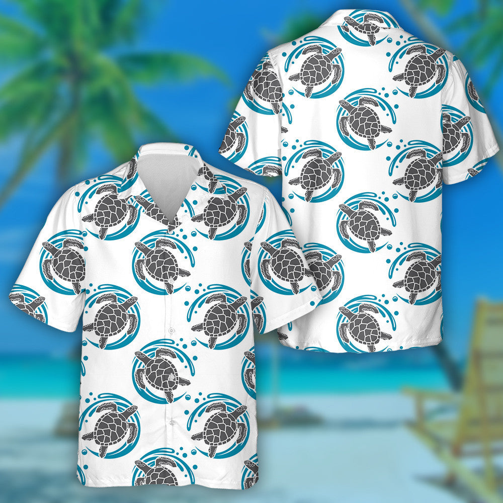 Sea Turtles And Waves On White Background Hawaiian Shirt, Hawaiian Shirt Gift, Christmas Gift