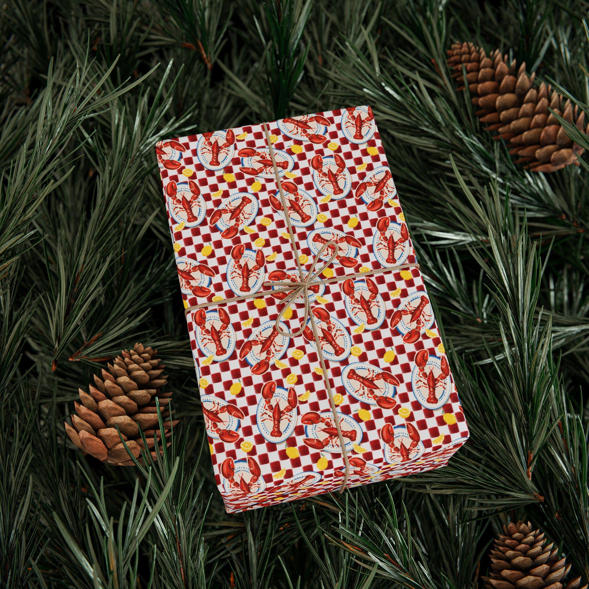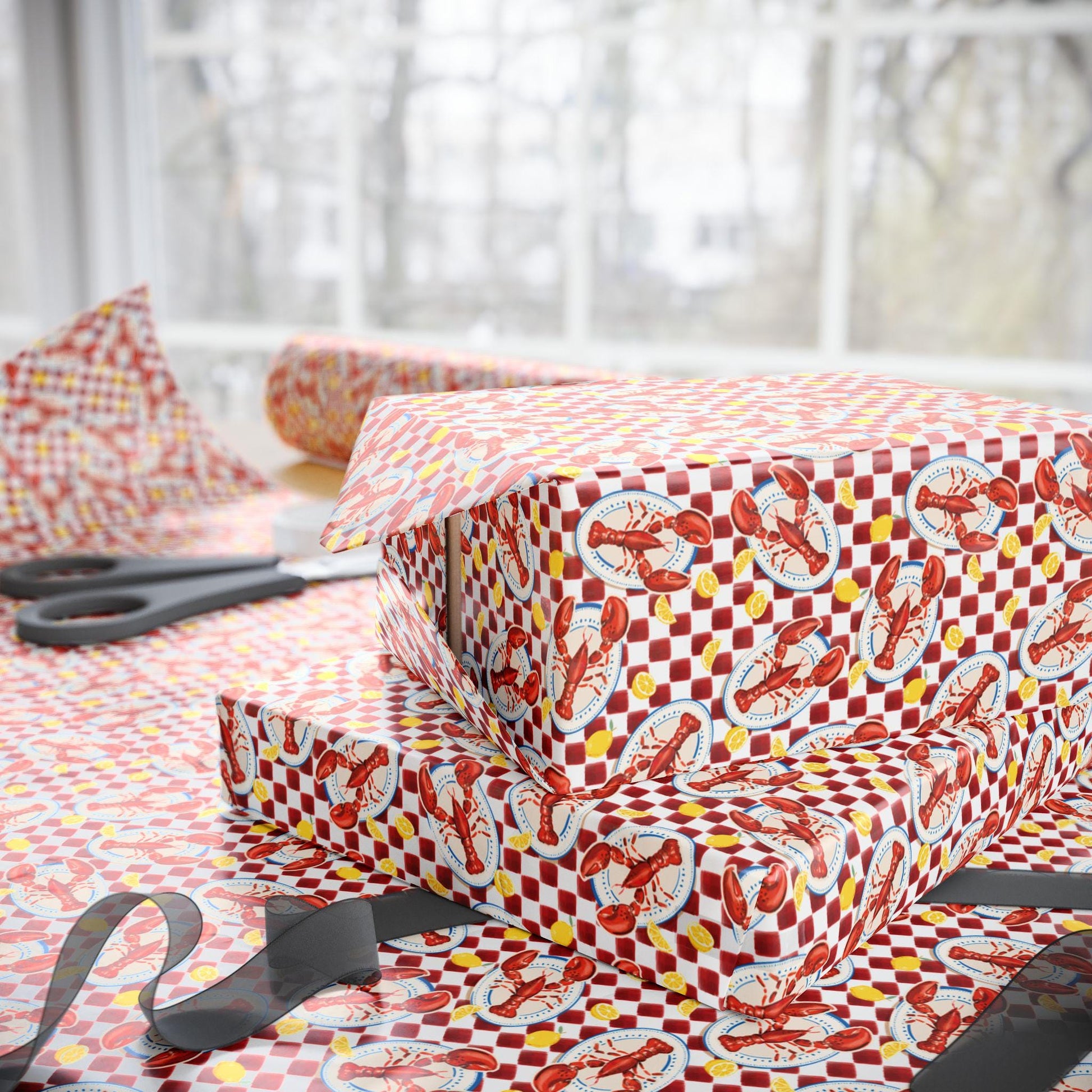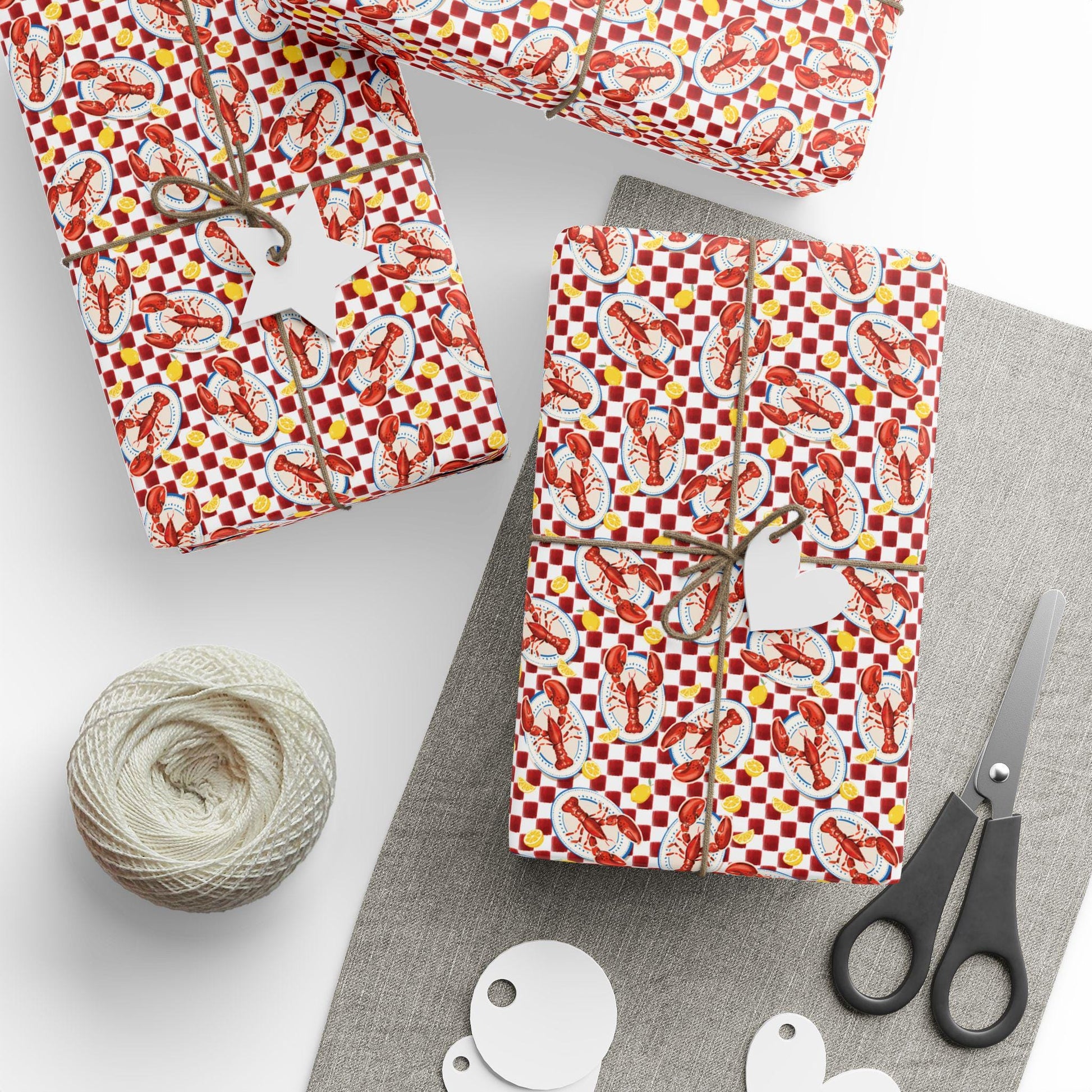 Seafood Print Wrapping Paper Vintage Mediterranean Lobsters Art Gift Wrap Foodies Coastal Weddings Tomato Girl Italian Summer Amalfi Coast