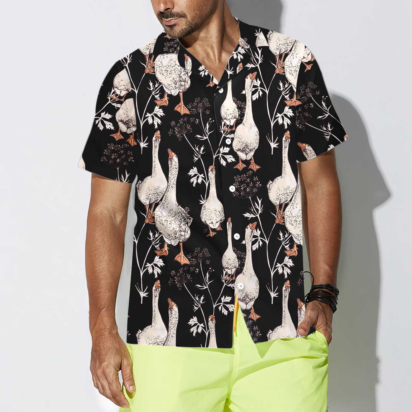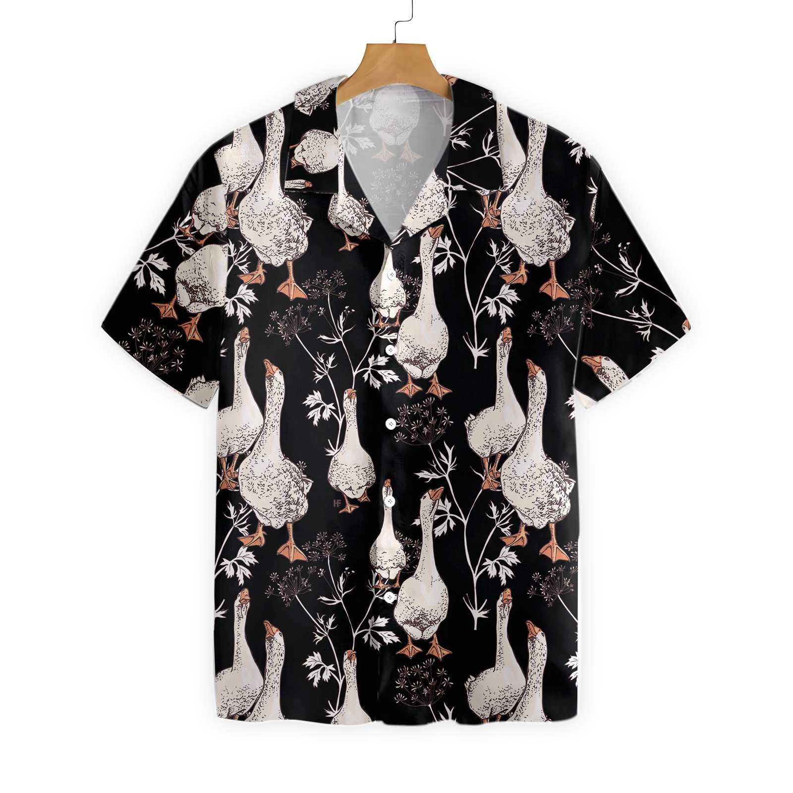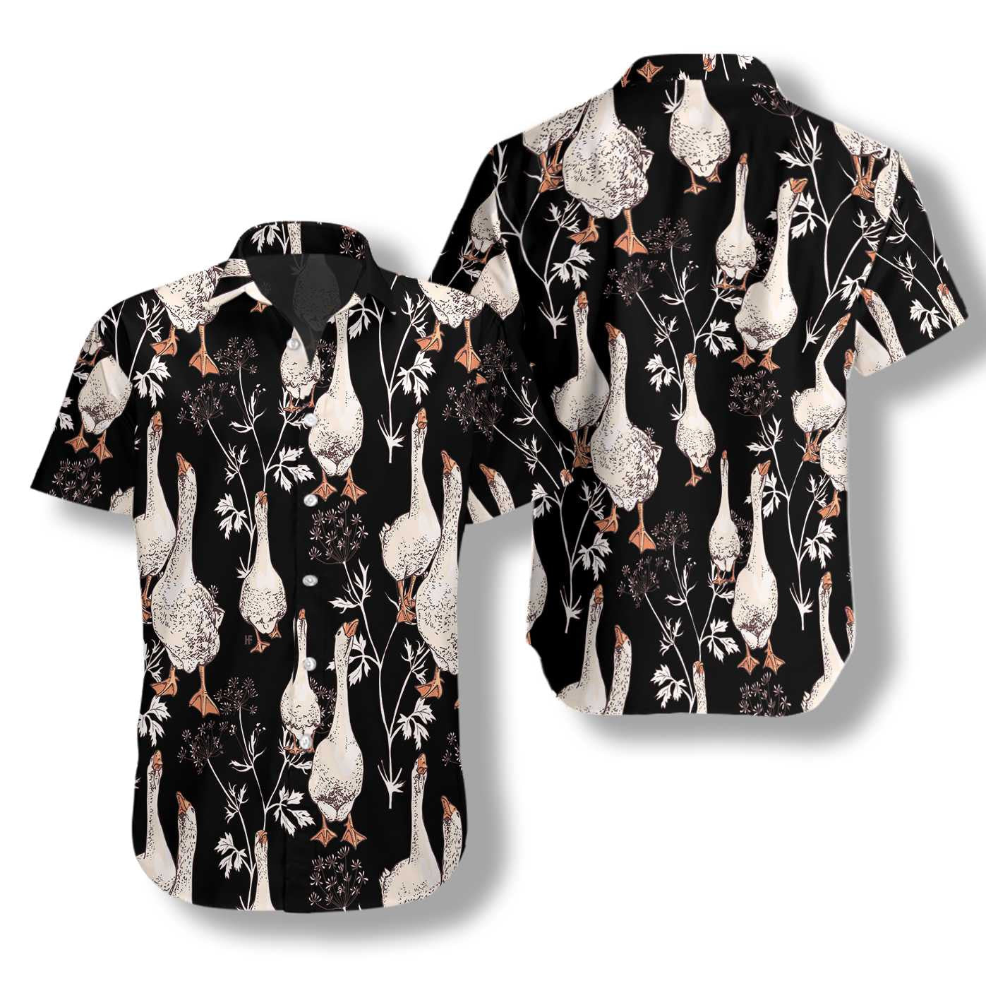 Seamless Gooses On Black Design Hawaiian Shirt, Hawaiian Shirt Gift, Christmas Gift