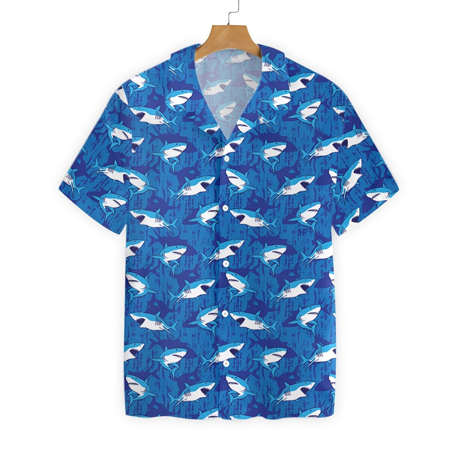 Shark Pattern Blue Theme Nice Design Hawaiian Shirt,Hawaiian Shirt Gift, Christmas Gift