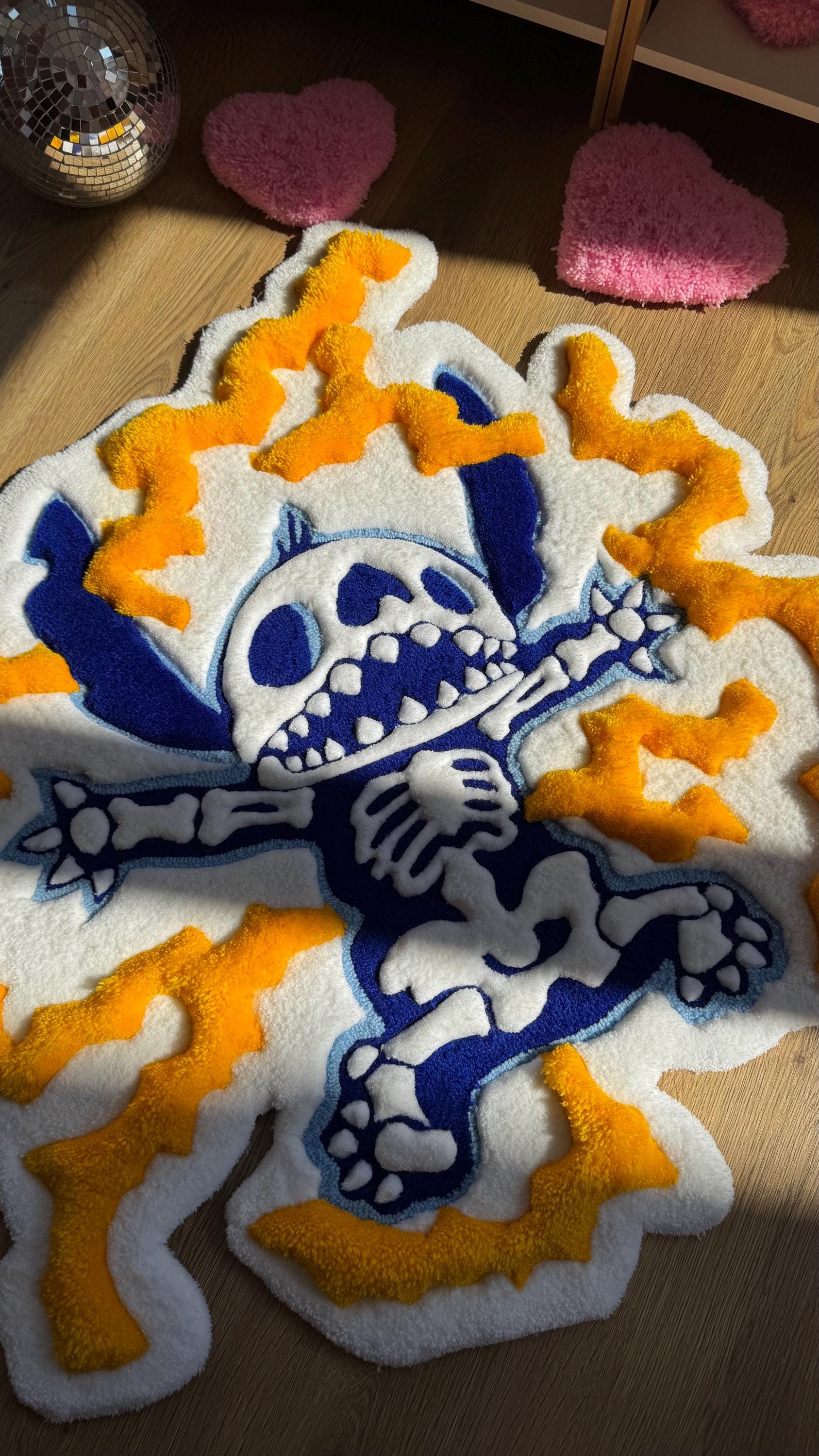 Skeleton Handmade Puffy Tufted Rug – Custom Handmade 3D Carpet, Fluffy Kawaii Goth Decor, Creepy-Cute Rug for Bedroom size 3 x 3 ft