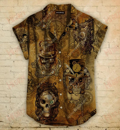 Skull Steampunk Short Short Sleeve Shirt Summer Hawaiian T Shirts Hawaiian Crazy Shirts Hawaiian Shirt Pattern, Hawaiian Shirt Gift, Christmas Gift