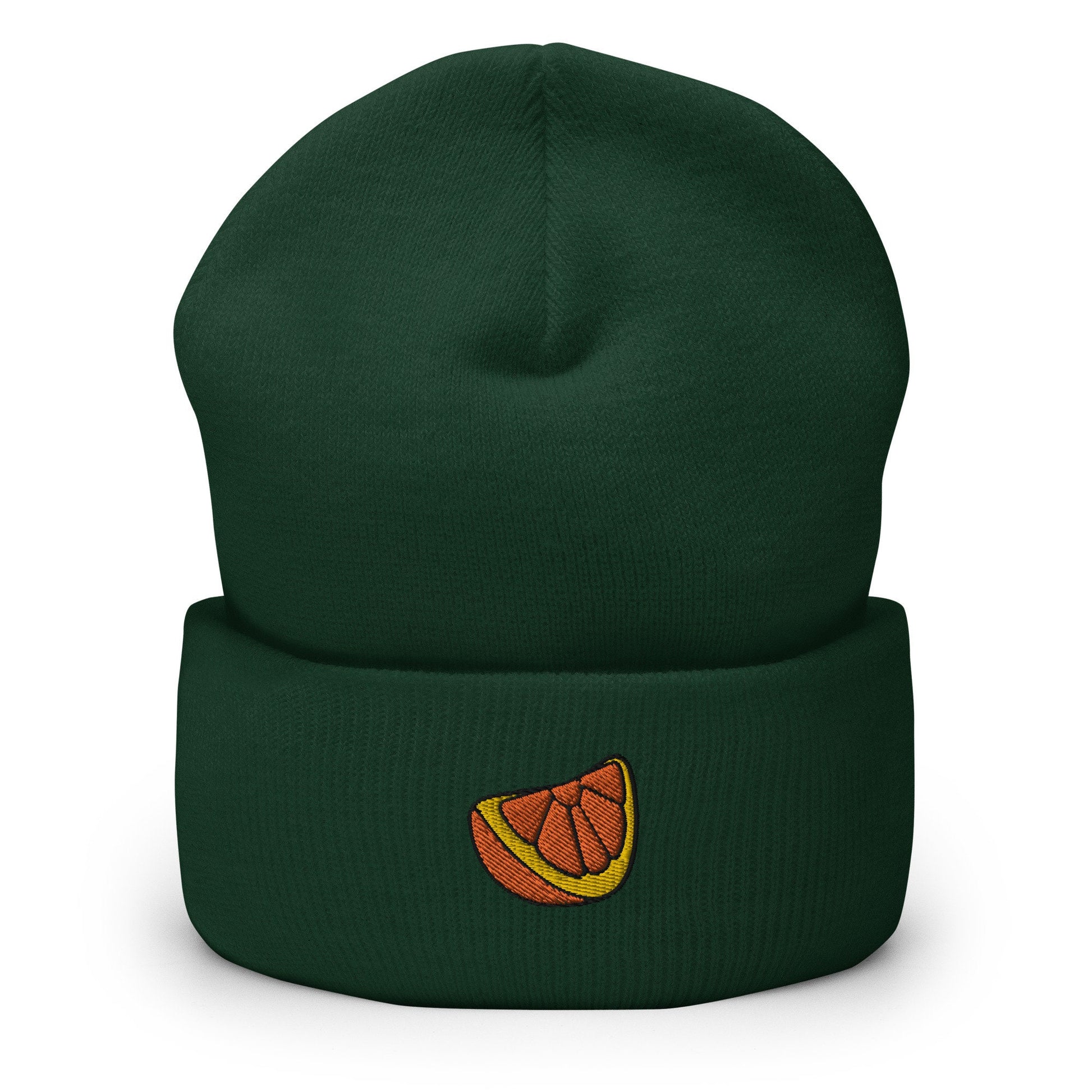 Slice of Orange Embroidered Beanie, Handmade Cuffed Knit Unisex Slouchy Adult Winter Hat Cap Gift
