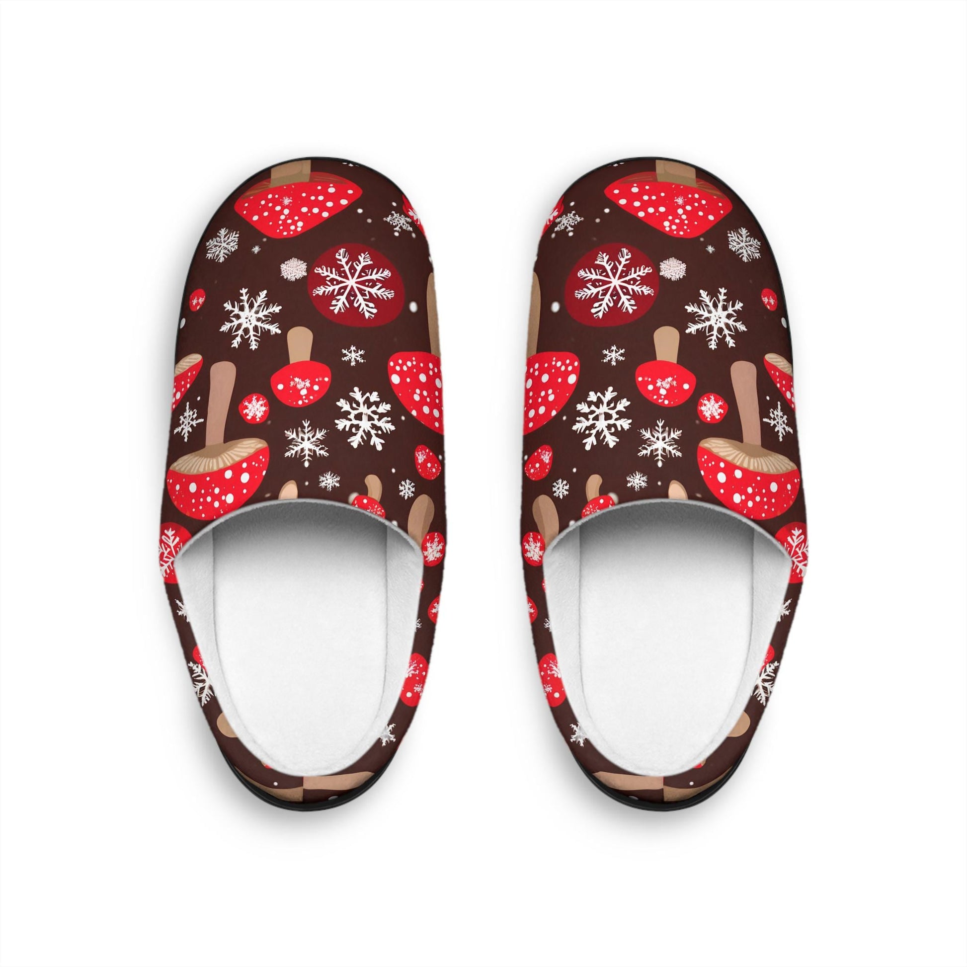 Slippers ForHim RedMushrooms with Snowflakes Cozy Winter Men's House Shoes Indoor Footwear Home Comfort Holiday GiftIdea ChristmasPresent