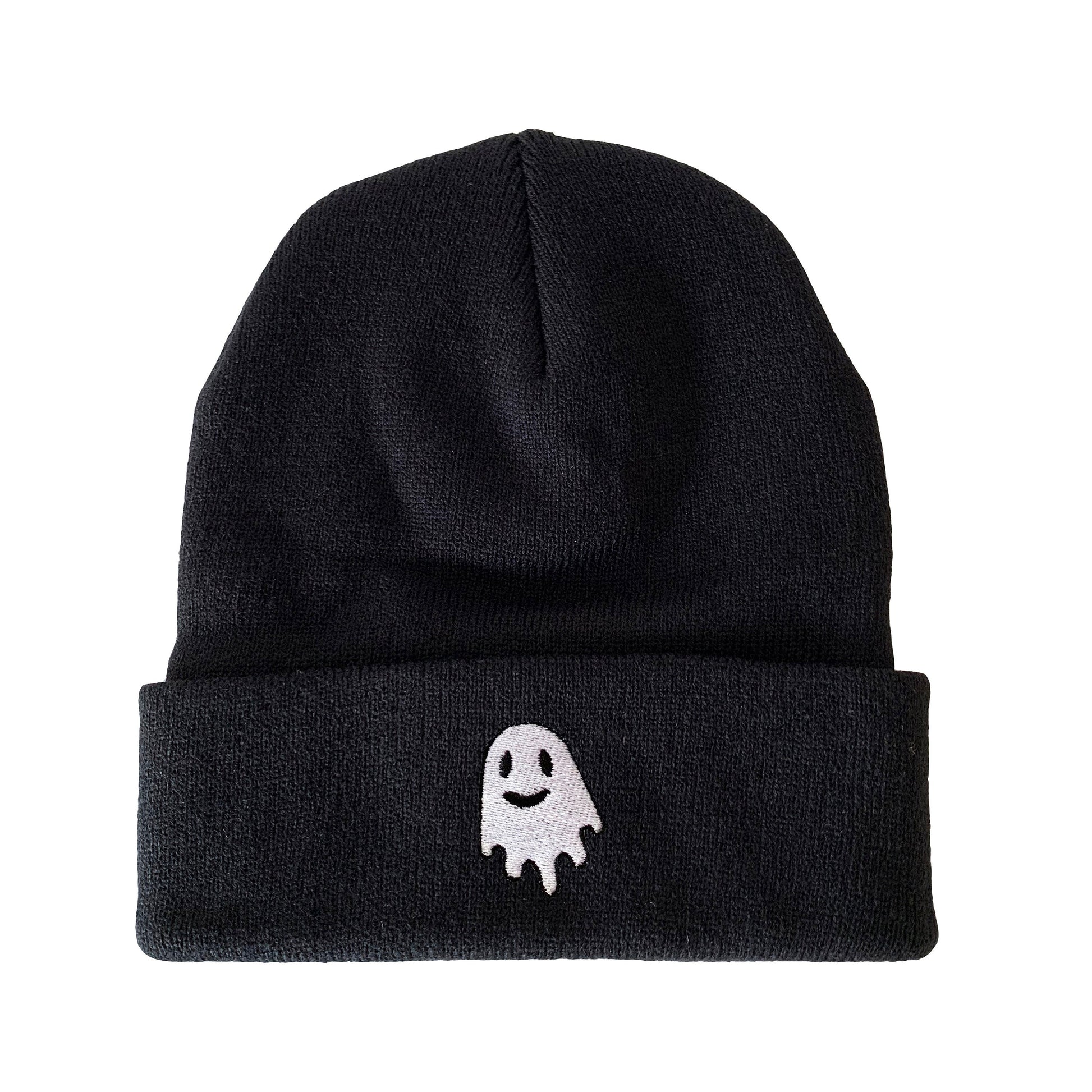Smiley Ghost Embroidered Beanie Halloween Winter Hat